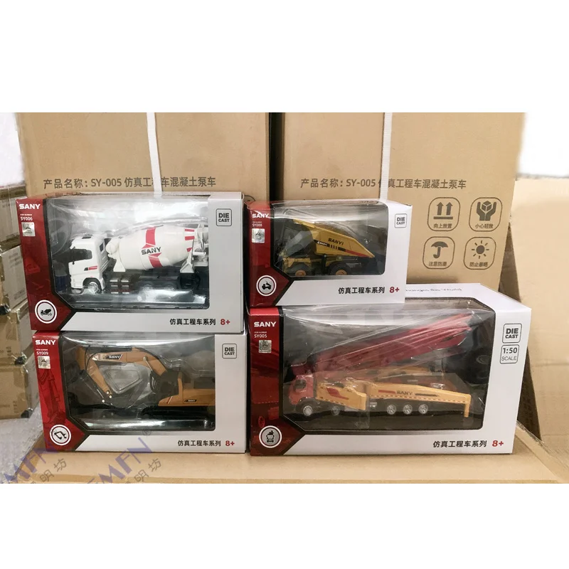 - Equipped with silver-rimmed wheels, hazard stripes, and branding such as “SANY,” capturing the essence of real engineering vehicles.