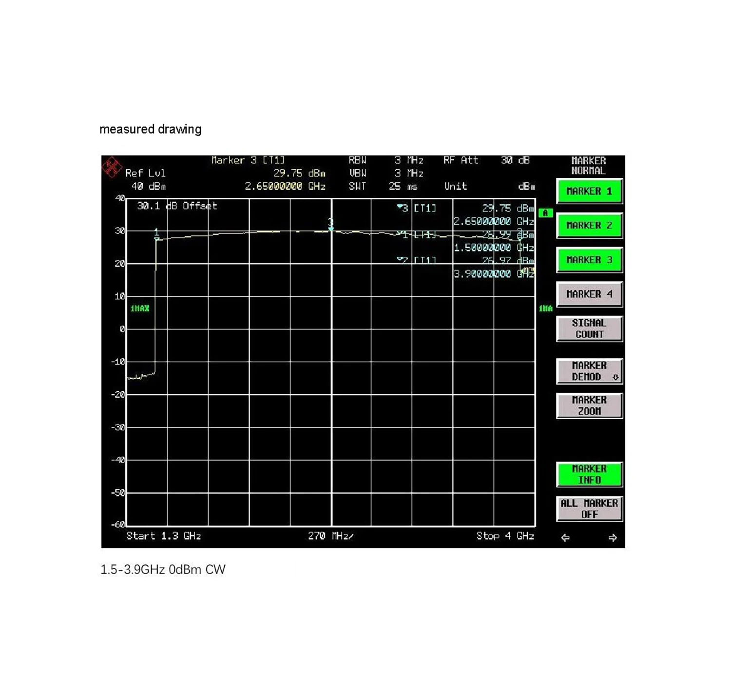 - offers a typical gain of 36dB, coupled with a 1W saturation power, ensuring powerful signal amplification suitable for demanding RF tasks.