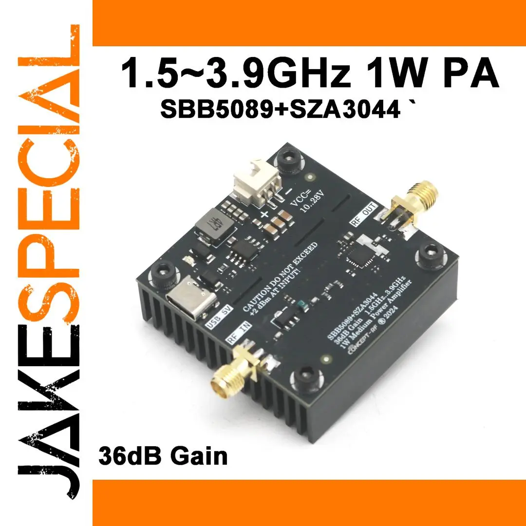 Experience the power and clarity this this SZA3044 RF amplifier provides in your wireless projects. Designed to operate within 1.5-3.9 GHz, it offers an impressive 36dB gain, delivering a stable 1W output that enhances signal strength for GPS, WiFi, Zigbee, Lora, and EMC testing. Its sleek, compact design—measuring approximately 50mm by 50mm—features a durable black circuit board with white silkscreen labels, gold-plated SMA RF connectors, and integrated heat sinks. This amplifier ensures reliable performance through high-quality components and thermal management. Whether you are an electronics enthusiast or a professional engineer, this device will significantly improve and stabilize your RF transmission.
