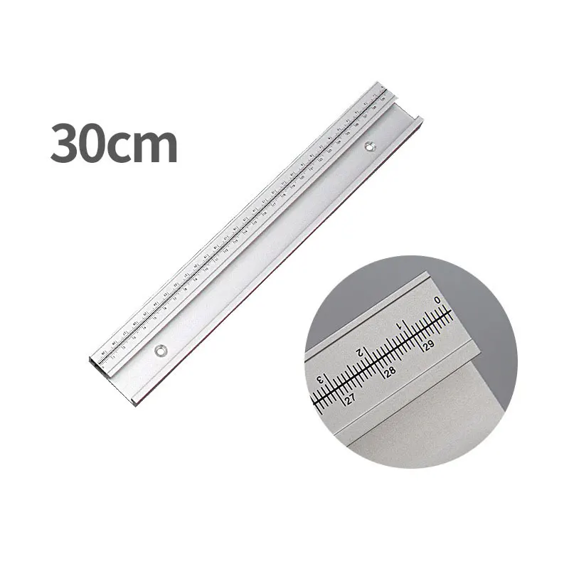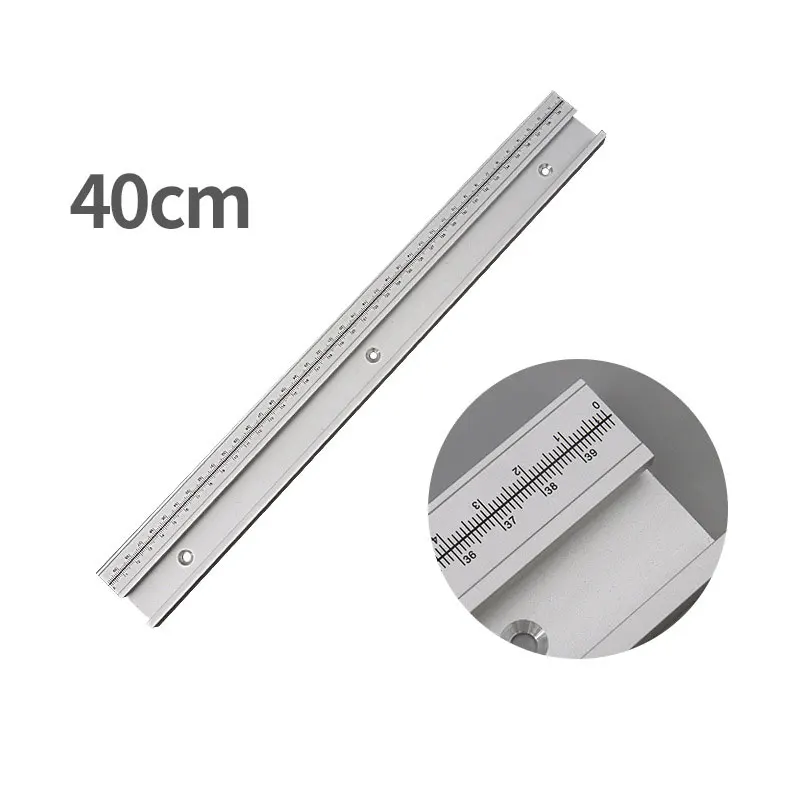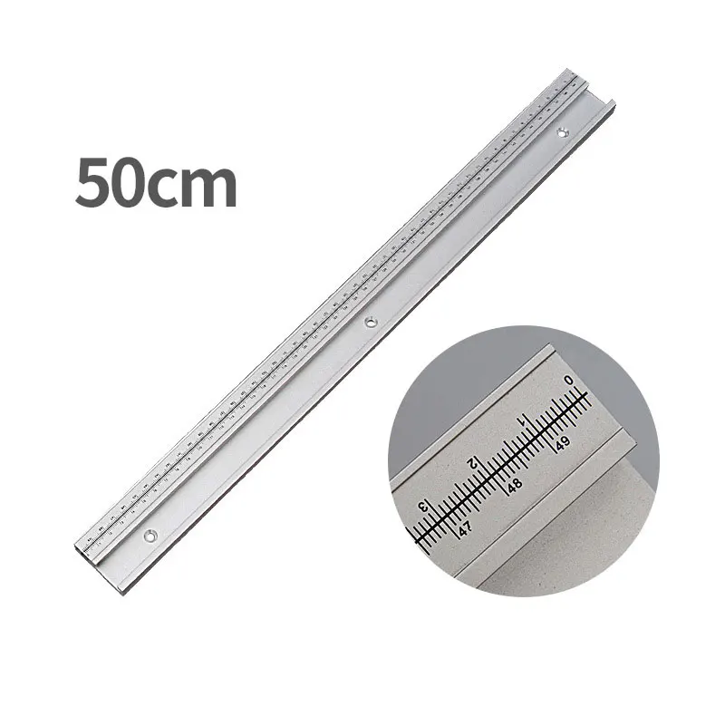 - This high-quality aluminium alloy T-Track features a 45mm width with an integrated measurement scale for precision adjustments in woodworking.
