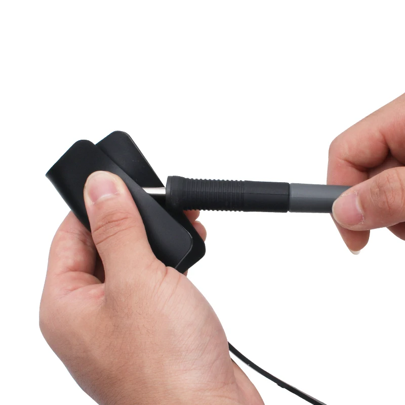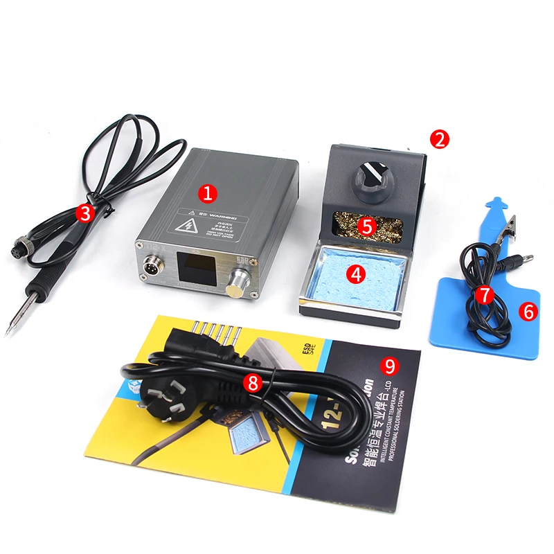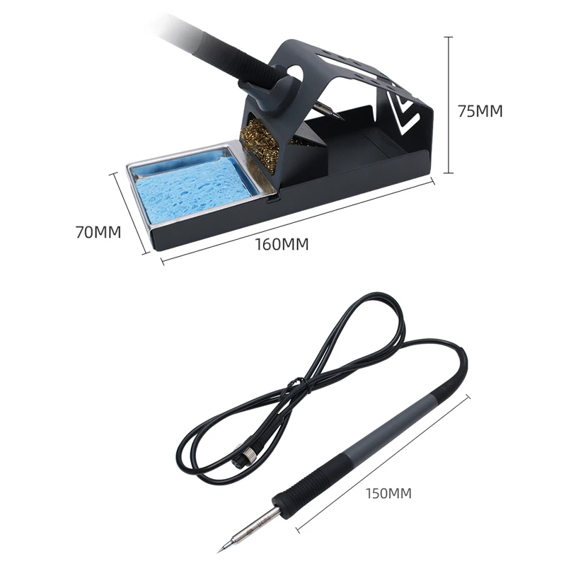 Experience precise and efficient electronic soldering with the T12-X Plus Soldering Station, featuring a sleek metallic silver finish and a modern LED digital display. With a voltage range of 90V-230V, 72W power, and a temperature range of 150°C to 480°C (with a 50°C enhancement), it offers accurate temperature control for high-performance BGA rework and soldering tasks. The ergonomic black handle paired with a black stand featuring brass filling and perforations ensures safe tip storage and cleaning. Designed for professionals, this CE-certified station combines functionality, durability, and a streamlined aesthetic to elevate your electronic repair or assembly work.
