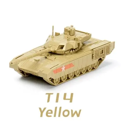 Experience the satisfaction of building your own battle-ready tank with this 1:72 scale assembly kit, featuring 30 finely molded plastic pieces. Choose between the T14 Armata or T90MS models, each measuring approximately 14 to 14.5 cm in length when assembled. These military-themed kits are available in vibrant green or yellow for a striking, realistic finish, with detailed turret and surface features that capture the rugged, armored aesthetic. Crafted from non-toxic plastic, they are specially designed for ages 12 and up, making them an engaging and rewarding project for adult collectors and military enthusiasts alike.