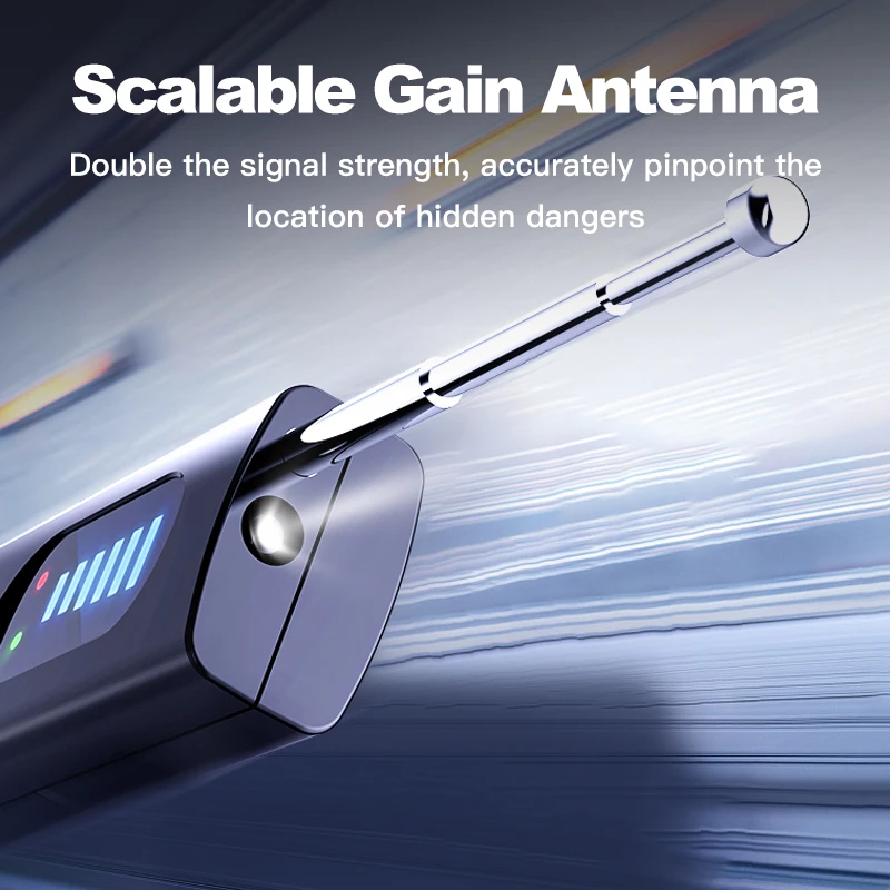 The T18 hidden camera detector is an essential tool for anyone concerned about privacy. Compact and lightweight, with dimensions of 94mm x 24mm x 15mm and weighing only 28g, you can easily carry it in your pocket or bag. Its sleek black design with a glossy finish not only adds to its aesthetics but also makes it a discreet yet modern accessory. Equipped with advanced detection capabilities—RF signal detection, magnetic field detection, and laser detection—this device ensures you stay informed of any hidden surveillance. The built-in vibration alarm will alert you to detected signals, making it indispensable for both personal and professional use.