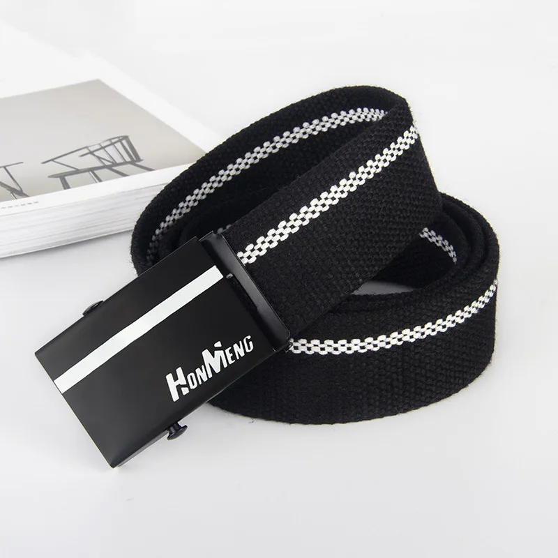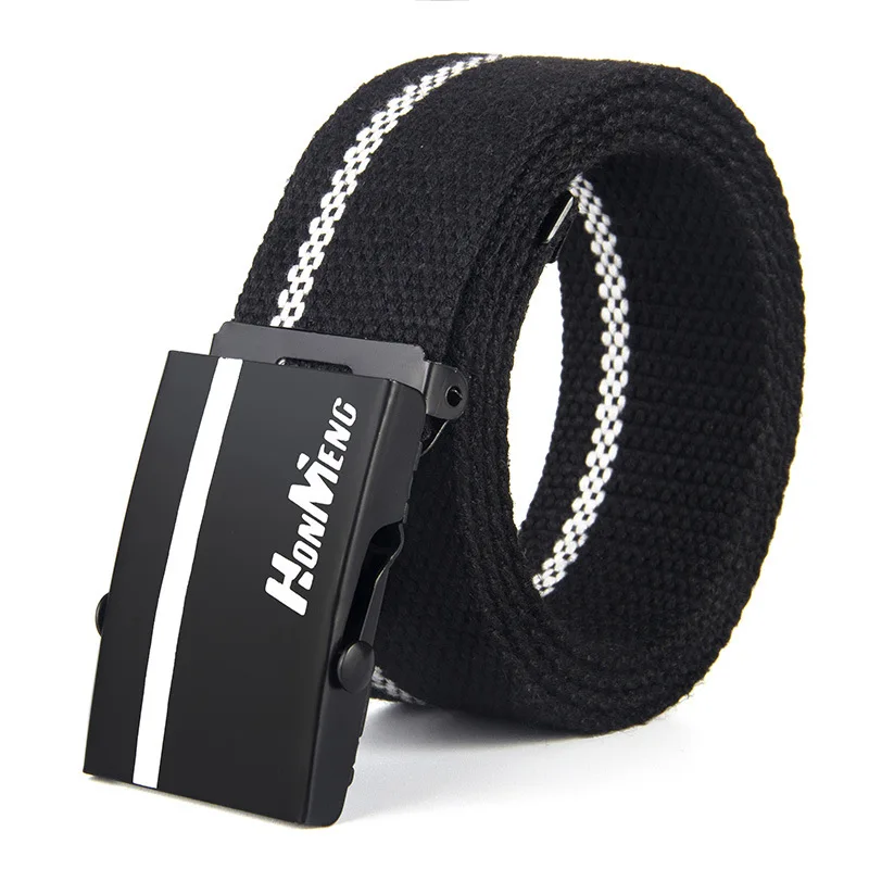 The tactical canvas belt is designed for men who appreciate both style and durability. Crafted from high-quality canvas, this belt boasts remarkable strength and flexibility, making it ideal for outdoor activities or casual wear. Its standout feature is the striking striped pattern, with bold black stripes that run lengthwise across the predominantly white canvas. Measuring 3.8 cm in width and 110 cm in length, it fits comfortably on various waist sizes, providing practicality without compromising aesthetics. The sleek automatic buckle, adorned with the brand name, ensures quick adjustments and adds a modern touch, making this belt not just an accessory, but a reliable companion for your adventures.