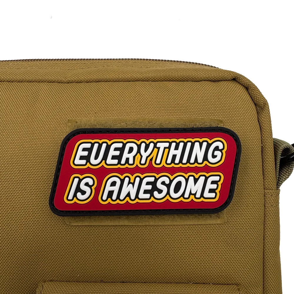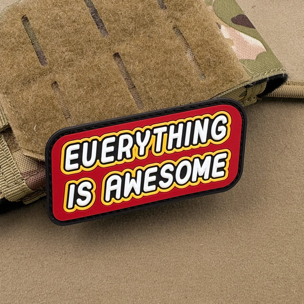 This tactical hook and loop patch armband is designed to bring a splash of vibrant creativity to your gear. Featuring the phrase “EVERYTHING IS AWESOME” on a striking red background, this patch will catch attention wherever it's displayed. The bold multi-colored text enhances visibility and adds a playful touch to jackets, backpacks, hats, or military vests. Made of durable nylon, polyester, and PVC, it features a soft, rubber-like texture, ensuring both comfort and longevity. This patch seamlessly combines function and style with its easy application and the option for additional sewing, making it perfect for any enthusiast looking to express their fun side.