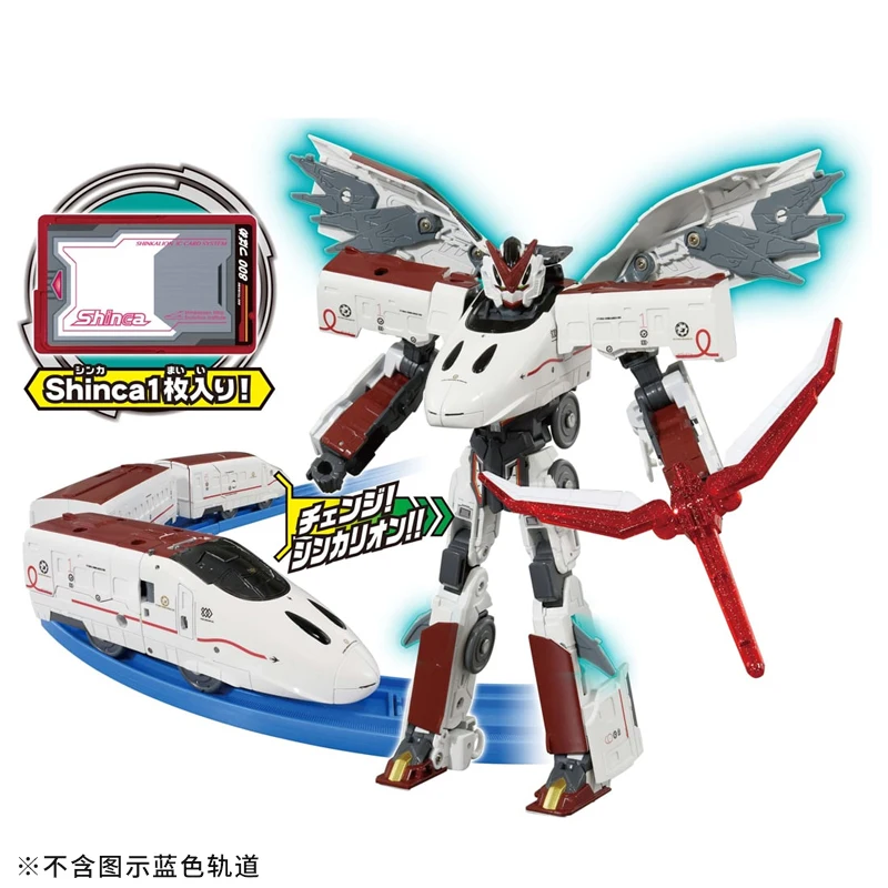 Experience the fusion of futuristic design and engineering mastery with this Takara Tomy Takica Deluxe Edition transforming train robot. Standing approximately 40cm tall, this detailed alloy figure combines sleek, aerodynamic train elements with a powerful, articulated robot form. Its high-tech aesthetic features a predominantly white robot with vivid red and black accents, sharp angular detailing, and metallic highlights that enhance its modern, high-speed appearance. The train components include streamlined, curved panels echoing real modern trains with pointed fronts for aerodynamic efficiency. For collectors and enthusiasts, this figure offers manual transformation, requiring some assembly with minor flaws, adding to its character. More than a display piece, it invites you into a world of imaginative play and technological marvel.