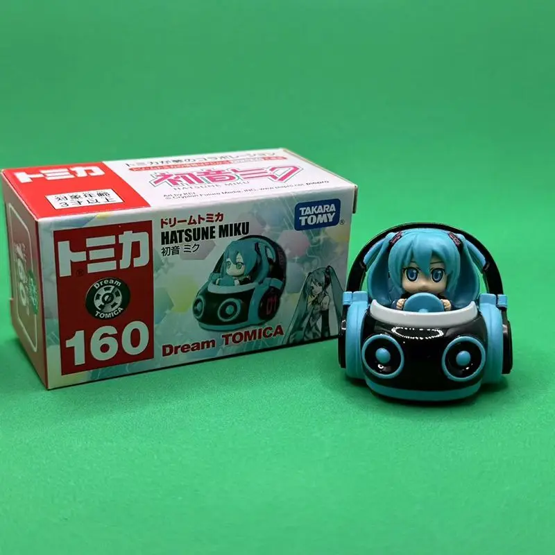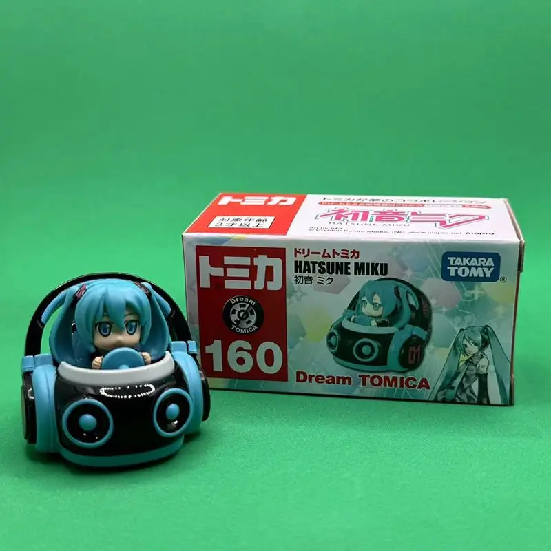 Step into a world of futuristic design with this highly detailed Takara Tomy No.160 Dream Simulation alloy car. Crafted from shiny diecast metal, it offers a solid, polished look that captures the eye and evokes a sense of high-tech elegance. The vehicle boasts a sleek, aerodynamic shape, accented with vibrant turquoise details on the body, headlights, and side mirrors, contrasting beautifully against its glossy black finish. Inside, you can imagine yourself holding the steering wheel, with the character of Hatsune Miku seated confidently, bringing the toy to life. This miniature combines playful styling with modern sophistication, making it a perfect collectible or gift for enthusiasts who love the unique blend of character and vehicle aesthetics.