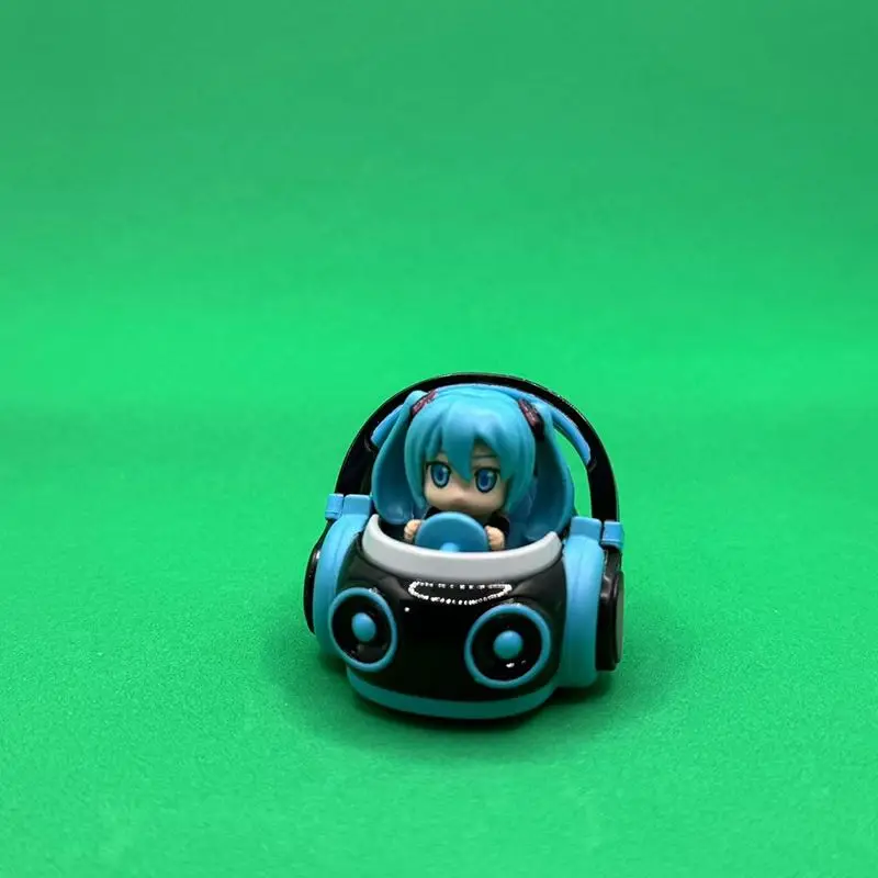 - The car features detailed interior components, including a steering wheel held by the digital character, Hatsune Miku, adding a layer of realism and charm to the miniature.