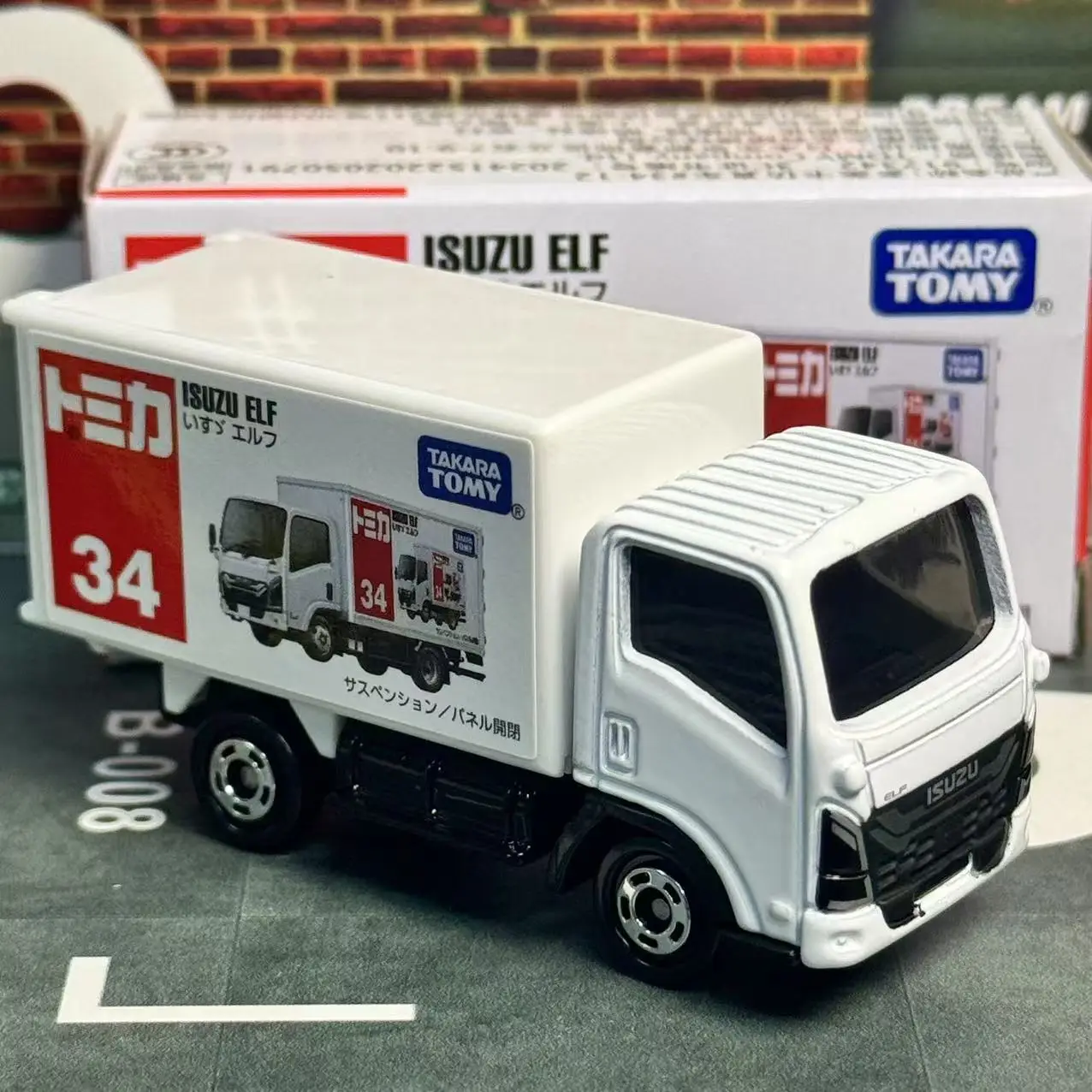 Experience the detailed craftsmanship of this Takara Tomy Tomica No.34 Isuzu Elf diecast alloy model, scaled at 1:64. Made from high-quality metal with no high-concern chemicals, this static display collectible is perfect for enthusiasts aged 14 and above. Featuring a sleek, modern design with precise detailing of the front grille, headlights, and cargo area, it captures the realistic essence of the vehicle. Originating from Vietnam and CE certified, it offers a durable and safe addition to any collection. The striking white finish with a bold red “34” accent and monochrome illustration on the packaging makes this a perfect display piece or gift for dedicated collectors.