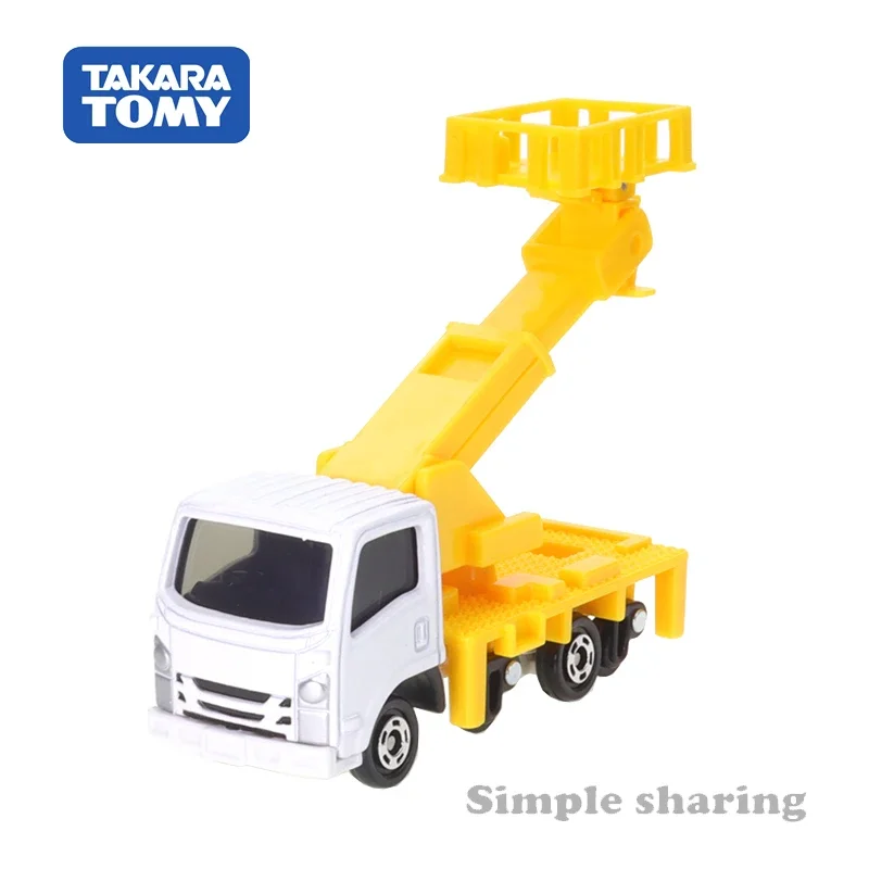 Experience the realism and craftsmanship of this detailed Takara Tomy Isuzu Elf Road-Rail Vehicle diecast model. Crafted with precision, this miniature replica measures approximately 8 centimeters long, 4.1 centimeters wide, and 3.9 centimeters high, with a lightweight of 49 grams. Its sleek, white cab with smooth, rounded contours and black-tinted windows offers a contemporary look. The front grille features thin horizontal black lines, seamlessly integrated with subtle headlights, enhancing its modern appeal. The vibrant yellow construction components, textured platform, and grid-like extendable boom arm with swivel and maneuverable features underline its industrial-inspired aesthetic. Ideal for collectors or enthusiasts, this model combines durability, detailed craftsmanship, and functional articulation to bring play and display possibilities to life.
