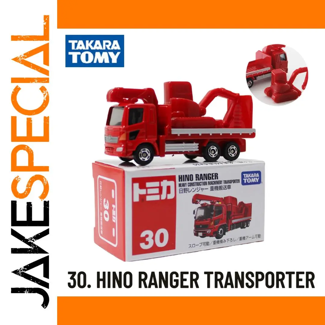 This stunning Takara Tomy Tomica Hino Ranger heavy construction machinery transporter is a must-have for every collector and enthusiast. Finished in a vibrant red that catches the eye, this miniature model features detailed accents in black and silver. The intricate design showcases realistic headlights and a distinct grille, perfectly capturing the essence of the actual Hino Ranger truck. Its well-crafted chassis and wheels made of durable plastic add to the authenticity. With every glance, you’ll feel the thrill of owning a masterpiece that reflects exceptional craftsmanship and deep appreciation for construction vehicles.