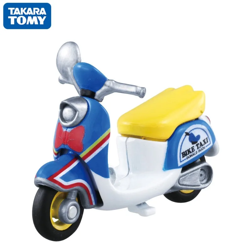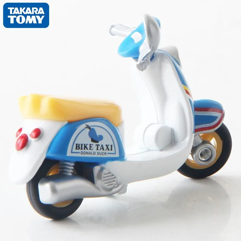 Imagine adding this meticulously crafted diecast motorcycle model from Takara Tomy to your collection. Its realistic design features a polished white body, accented by vibrant blue near the handlebars, bringing a playful yet sophisticated touch. The black wheels with golden hubs evoke elegance, complemented by detailed tire ridges and small silver accents on the handlebars and beneath the seat. Bright red taillights add vivid contrast, making the model eye-catching. With a smooth, rounded shape and durable metal construction, this model captures the charm of a cartoon-inspired scooter while maintaining high-quality craftsmanship suitable for display or as a thoughtful gift for enthusiasts and collectors aged 14 and up. Own a piece of detailed artistry today!