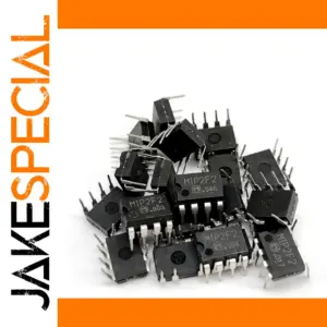Experience reliable performance with this this Takin Chip MIP2F2 DIP-7 Power Management IC, specially designed for LCD applications. Crafted with precision, this set of 10 high-quality components features a sleek, rectangular black plastic casing with a matte finish that enhances durability. Each IC includes 14 metal pins protruding from both sides, allowing easy integration into various electronic circuits and breadboards. The top surface sports crisp, white markings, including the model number “MIP2F2,” a small logo, and batch codes such as “.946,” “.803,” “.664,” and “.017,” ensuring complete traceability and quality control. This component offers a sleek, modern industrial aesthetic combined with ultimate functionality, making it an essential upgrade for LCD power management systems.