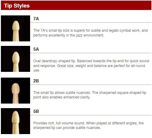 - Available in multiple sizes: 5A, 7A, 5B, and 5B F, suitable for different playing styles and preferences.