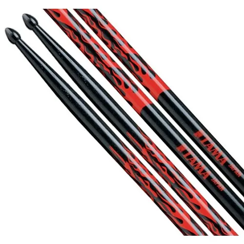 Experience the bold energy of these TAMA Rhythmic Fire Series drumsticks, crafted in Japan. Designed with striking flame motifs, they elevate your drumming with their fierce aesthetic and exceptional performance. Available in various sizes such as 5A, 7A, 5B, and 5B F, each pair features a teardrop-shaped tip optimized for quick response and sound clarity. The balanced weight distribution toward the tip end makes them ideal for versatile, all-round use, whether you're practicing, recording, or performing live. The dynamic designs—black with red flames, silver flames, or natural with black flames—will inspire confidence and passion during every beat. These sticks combine aesthetics with function, helping you deliver powerful, precise performances every time.