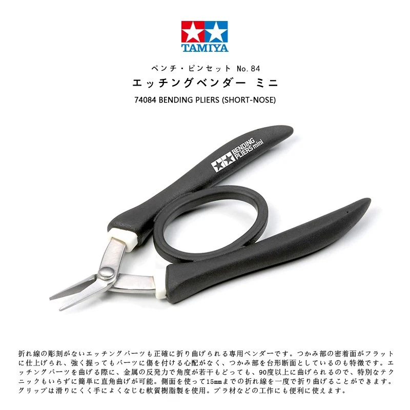Take your modeling projects to the next level with TAMIYA Bending Pliers. Imagine yourself expertly crafting models with the right tools in hand; this is your chance to make it a reality. Order now and experience the satisfaction of precision and quality in every bend, ensuring your creations shine brilliantly. Whether you're a veteran modeler or just starting, these pliers will be invaluable companions in your creative journey.