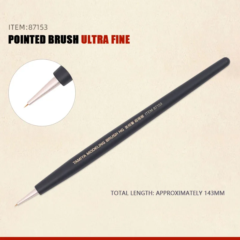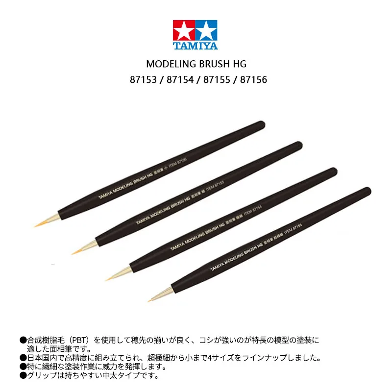 Enhance your modeling projects with this set of four TAMIYA ultra-fine pointed brushes (models HG 87153, 87154, 87155, and 87156), crafted from high-quality synthetic fiber. Each brush features a sleek, dark handle that tapers to a sharply pointed tip, perfect for detailed painting of plastic models and figures. Designed for precision work, these Japan-made brushes ensure smooth, controlled application of paint in intricate areas. Ideal for hobbyists and professionals alike, this set provides reliable tools to achieve professional-quality results in craft, model painting, and fine detail work, helping you bring your creative visions to life with accuracy and finesse.