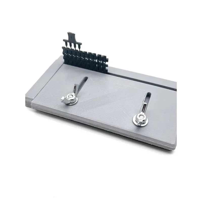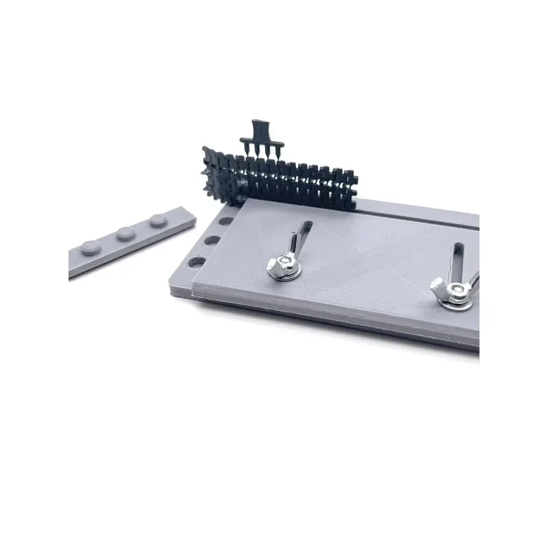Experience seamless model tank building with this versatile LEUNGS track assembler, designed to elevate your hobby. Made from durable gray plastic with a subtle textured finish, its compact rectangular shape measures 110mm in length, 60mm in width, and 9mm in height, providing a sleek, low-profile profile. Equipped with adjustable metal wing nuts on sliders, it ensures precise spacing up to 30mm, making track assembly straightforward and efficient. Its minimalist design emphasizes practicality, with black plastic parts neatly arranged for easy alignment. Perfect for hobbyists aged 14 and above, this tool enhances your model-building process by offering durability and accuracy, all while maintaining a modern, utilitarian aesthetic.