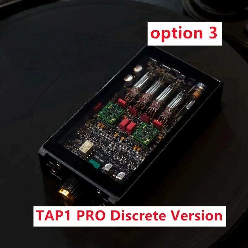 Experience exceptional sound quality with the this TAP1 Pro Standard Version, a compact yet powerful portable hi-fi headphone amplifier designed for audiophiles who demand exceptional performance. Featuring a sleek black metallic casing, this device combines modern minimalism with high-grade craftsmanship. The open top reveals four vintage-style vacuum tubes, each with reflective glass envelopes and metallic bases, offering a sophisticated aesthetic and warm tonal qualities. Its vibrant green circuit board neatly houses electronic components, blending industrial elegance with precision technology. With dual balanced and single-ended inputs and outputs, it supports high-impedance headphones from 5 to 600 ohms. The device is perfect for both portable and desktop use, delivering stunning sound clarity and customization options.