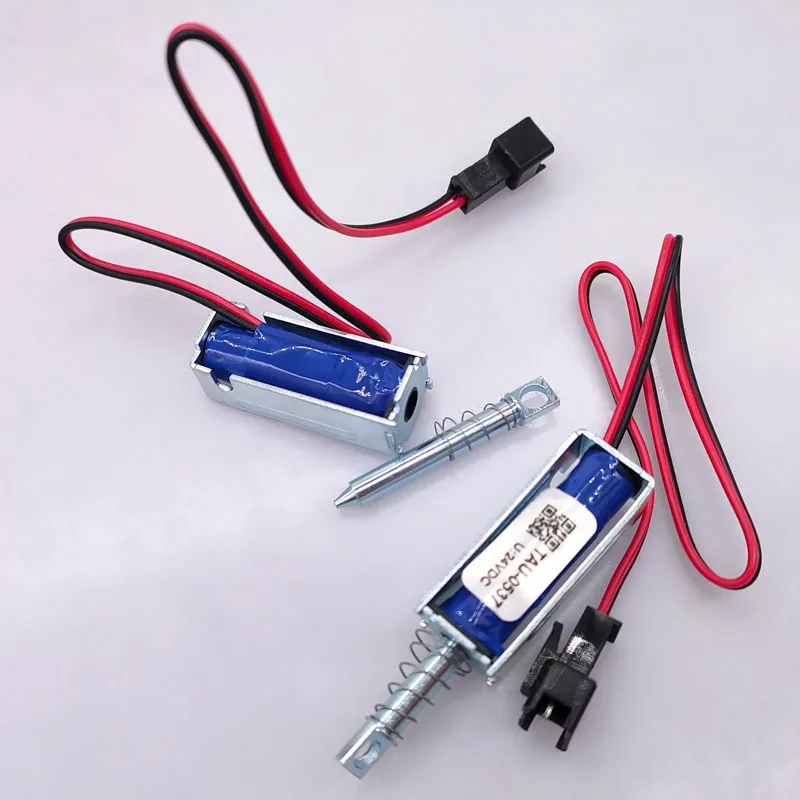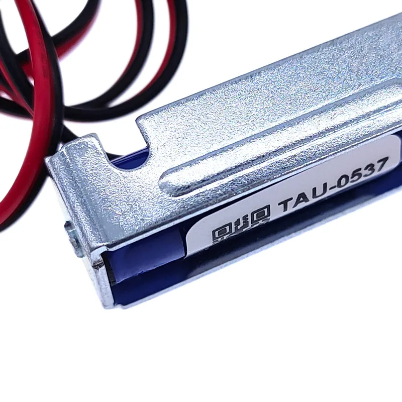 Experience secure, reliable access control with this high-quality TAU-0537 electromagnetic lock. Crafted with a sleek, rectangular metallic housing, it combines modern industrial aesthetics with advanced functionality. Its shiny aluminum or steel finish adds a polished touch to any security setup, while the compact dimensions—37.5mm long, 14.5mm wide, and 10mm high—make it ideal for various installations. The lock energizes instantly within 0.2 seconds when powered by DC 6V, 12V, or 24V, with current ratings of 1.5A, 2A, or 1A respectively. Built for durability, it boasts a service life of over 500,000 cycles, ensuring long-term peace of mind. The included red and black power wires facilitate easy connection and secure operation in a range of security environments, effortlessly blending form and function.