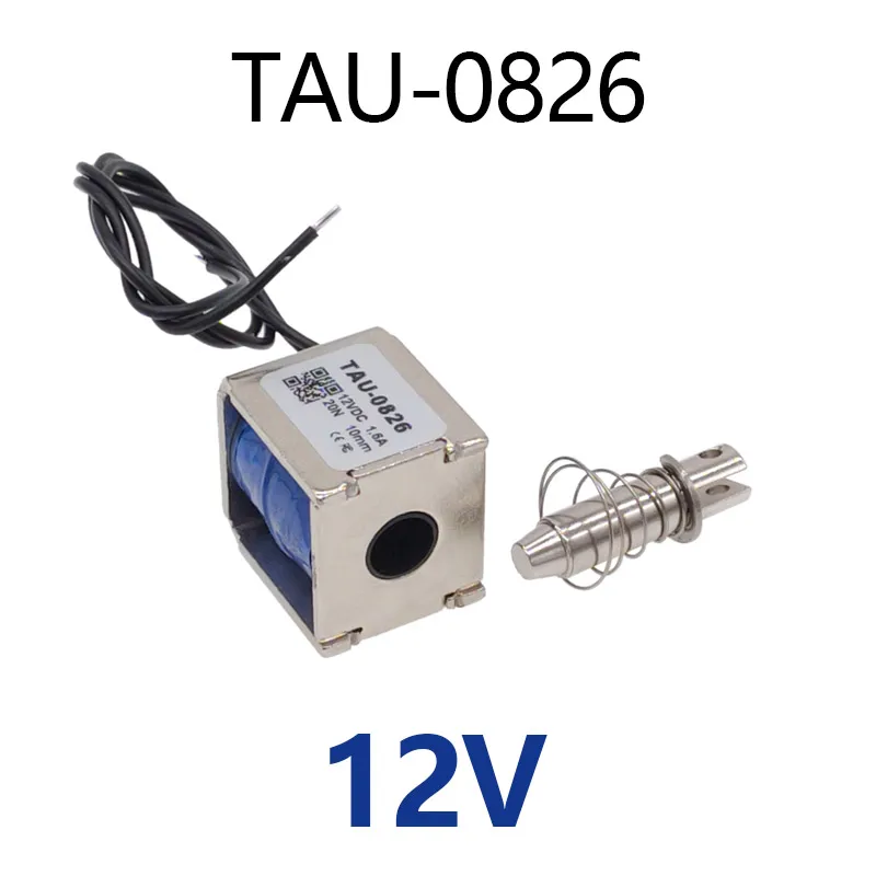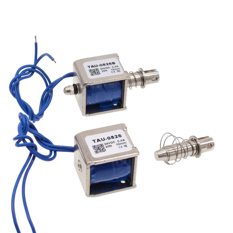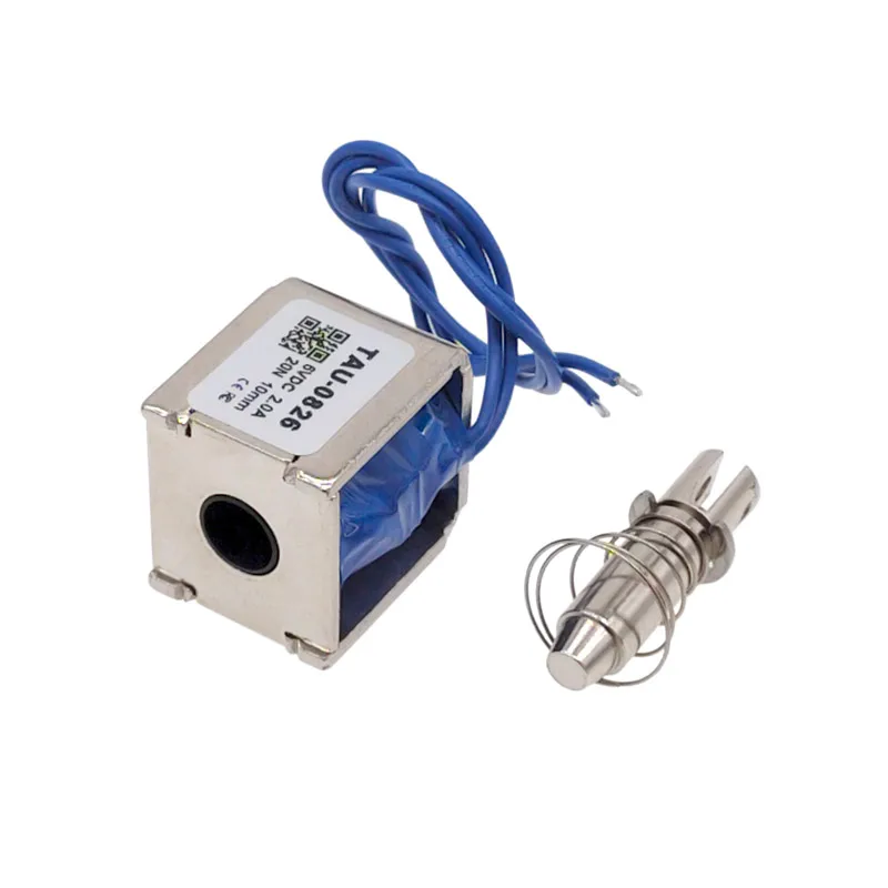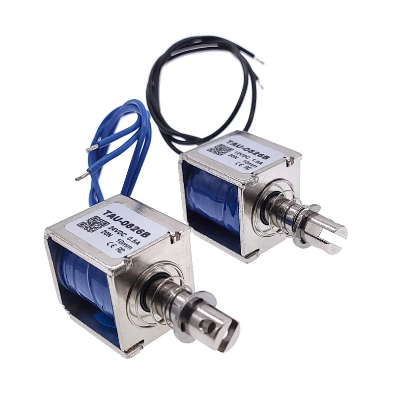 Experience reliable automation control with the TAU-0826B linear electric magnet, measuring 22 x 25 x 26 mm and weighing 76 grams. Designed for intermittent use, it operates at 6V, 12V, or 24V DC with currents of 2A, 1.5A, and 0.5A respectively, providing a 10mm travel distance. Its sleek, silver metallic body features a smooth, reflective surface with visible blue coil windings and cylindrical core extensions for precise engagement. Suitable for gaming machines, ticket and cash machines, and automatic office equipment, this CE-certified electromagnet offers stable performance with temperature regulation, ensuring your automation projects run smoothly and reliably—imagine it activated, effortlessly controlling your devices.