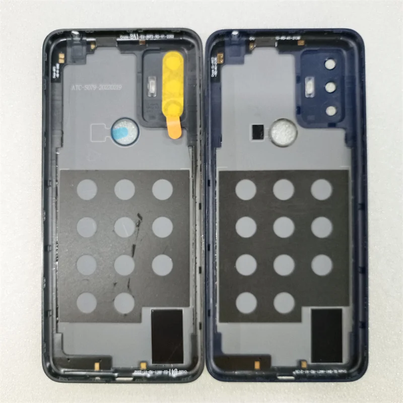 Elevate the protection and aesthetic of your TCL 30E and 30 SE models with this high-quality battery door back cover housing. Available in alluring shades of gray and deep blue, these covers are designed to not only safeguard your device but also enhance its overall look. Featuring a smooth, glossy finish, the elegant design includes a rectangular camera module with three circular lenses complemented by vibrant accents. The precise cutout for the fingerprint sensor ensures easy access while maintaining a sleek appearance. Choose this perfect blend of style and functionality to give your smartphone a fresh, rejuvenated appearance that resonates with your personal flair.