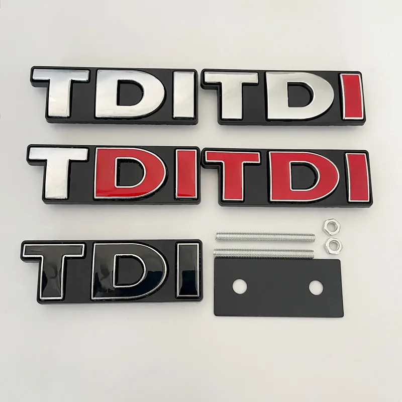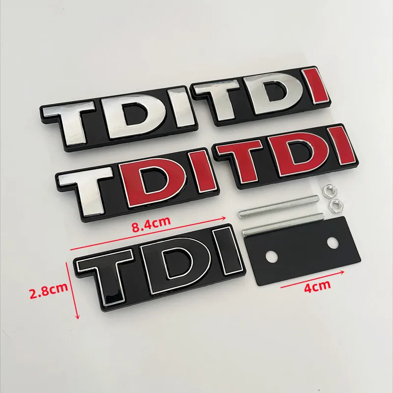 Enhance your vehicle’s appearance with this high-quality alloy metal TDI emblem badge, measuring approximately 7.5 cm x 2.6 cm for the sticker and 8.4 cm x 2.8 cm for the grille emblem. Designed in a sleek, three-dimensional black finish, this word-style logo is compatible with VW models including Golf 4, 6, 7 MK6, Polo, Jetta, and Passat. Suitable for placement on the front grill, rear trunk, or body, it offers a customizable, glossy surface that adds a bold, modern touch to your car. Available in various color options such as black, silver, and red, with variations like Red DI and Grill Red TDI to match your style.