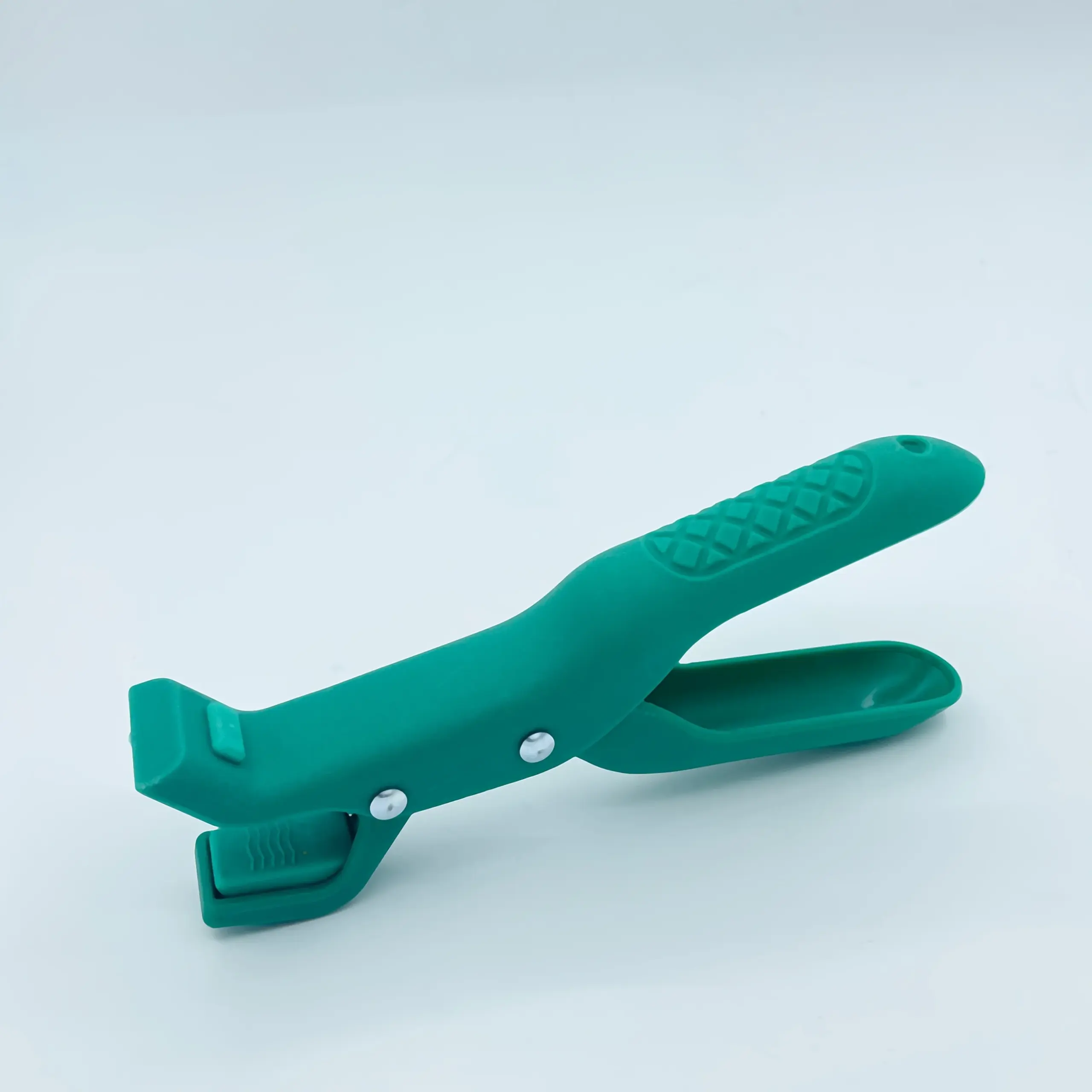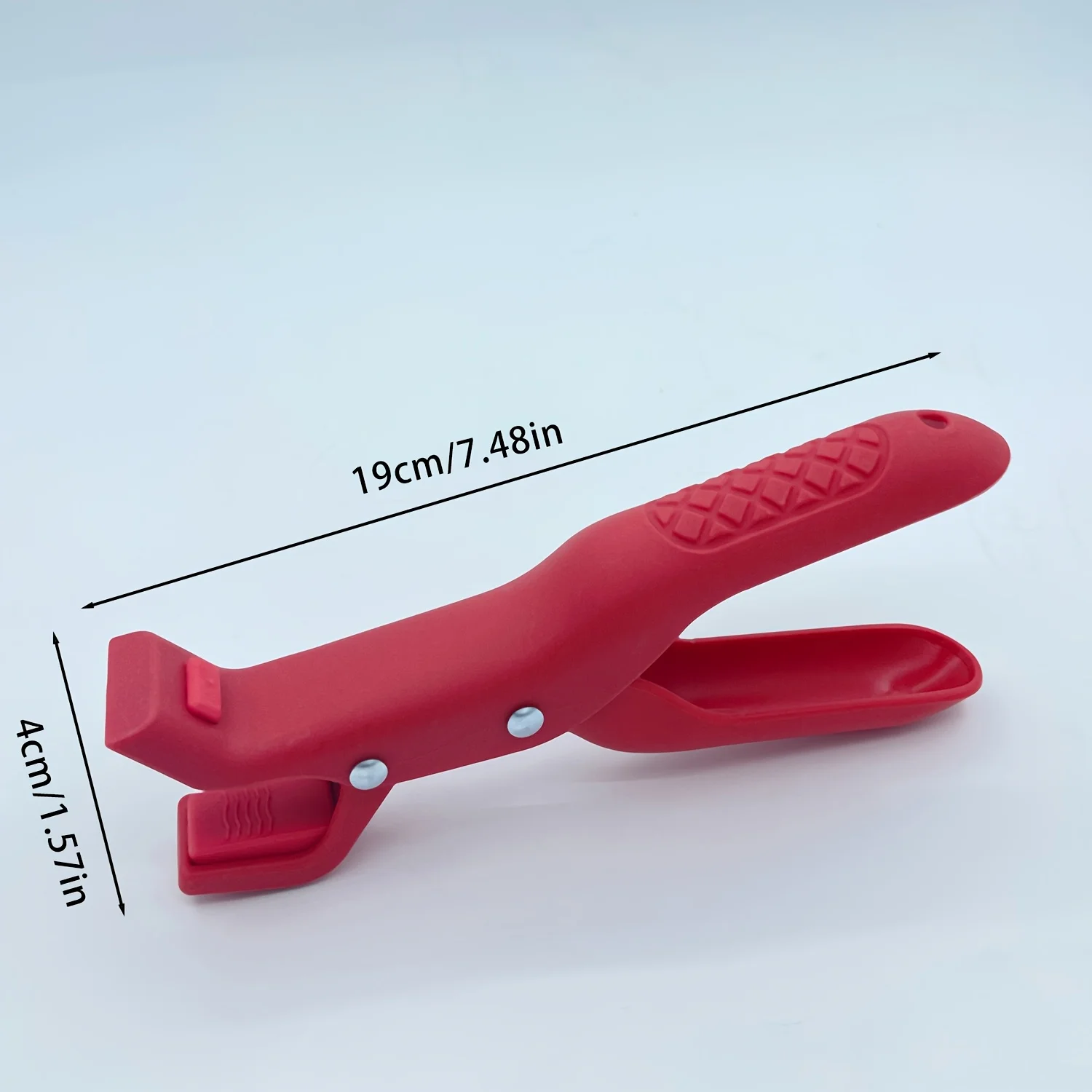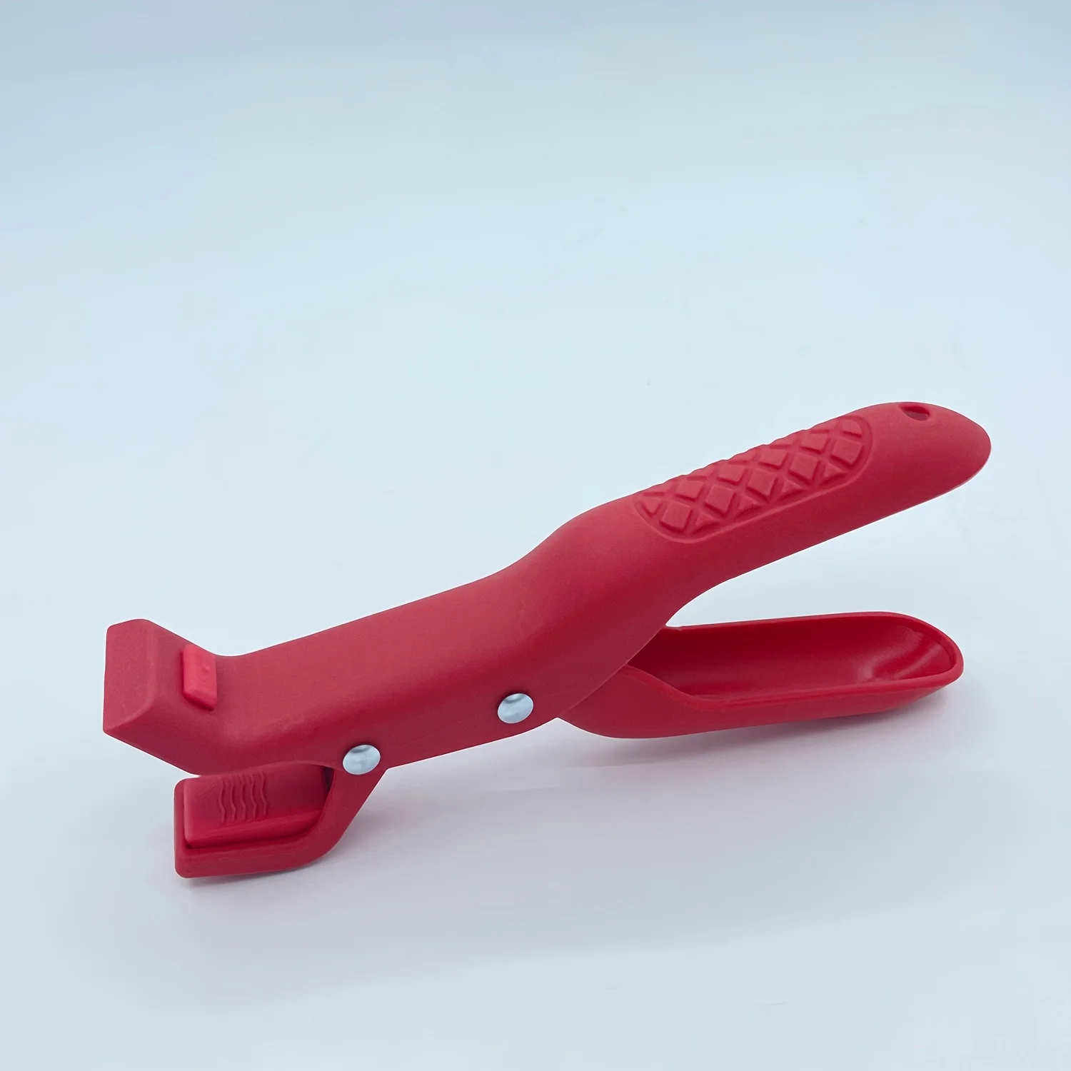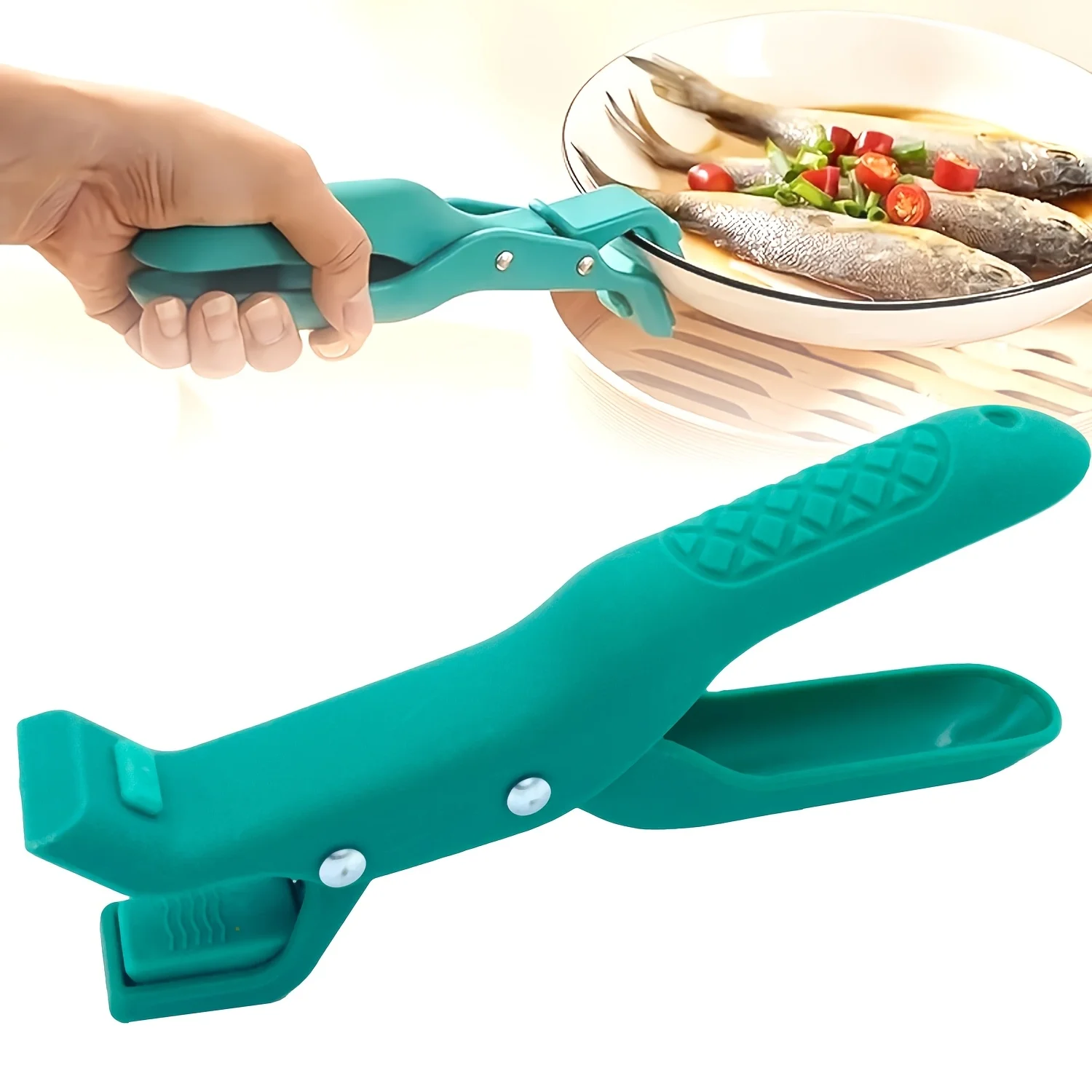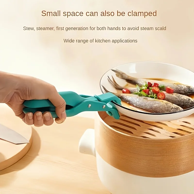 This lightweight, heat-resistant, and non-slip plastic kitchen clamp offers a secure grip for safely handling hot pots and bowls. Its ergonomic design features a smooth, slightly textured handle for comfortable use, while the rounded gripping arms with flat, wide surfaces ensure a secure, damage-free hold. Equipped with a small metallic spring and rectangular latch for easy opening and locking, this durable and versatile tool is ideal for multipurpose kitchen tasks, providing safety and convenience during cooking and serving. Available in a sleek teal or turquoise matte finish, it combines functional design with modern aesthetics for adult collectors and enthusiasts.