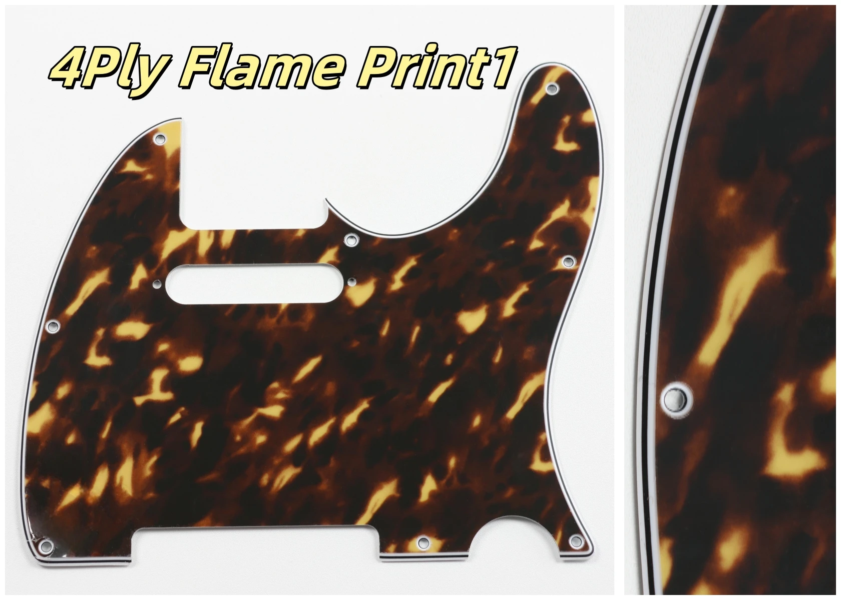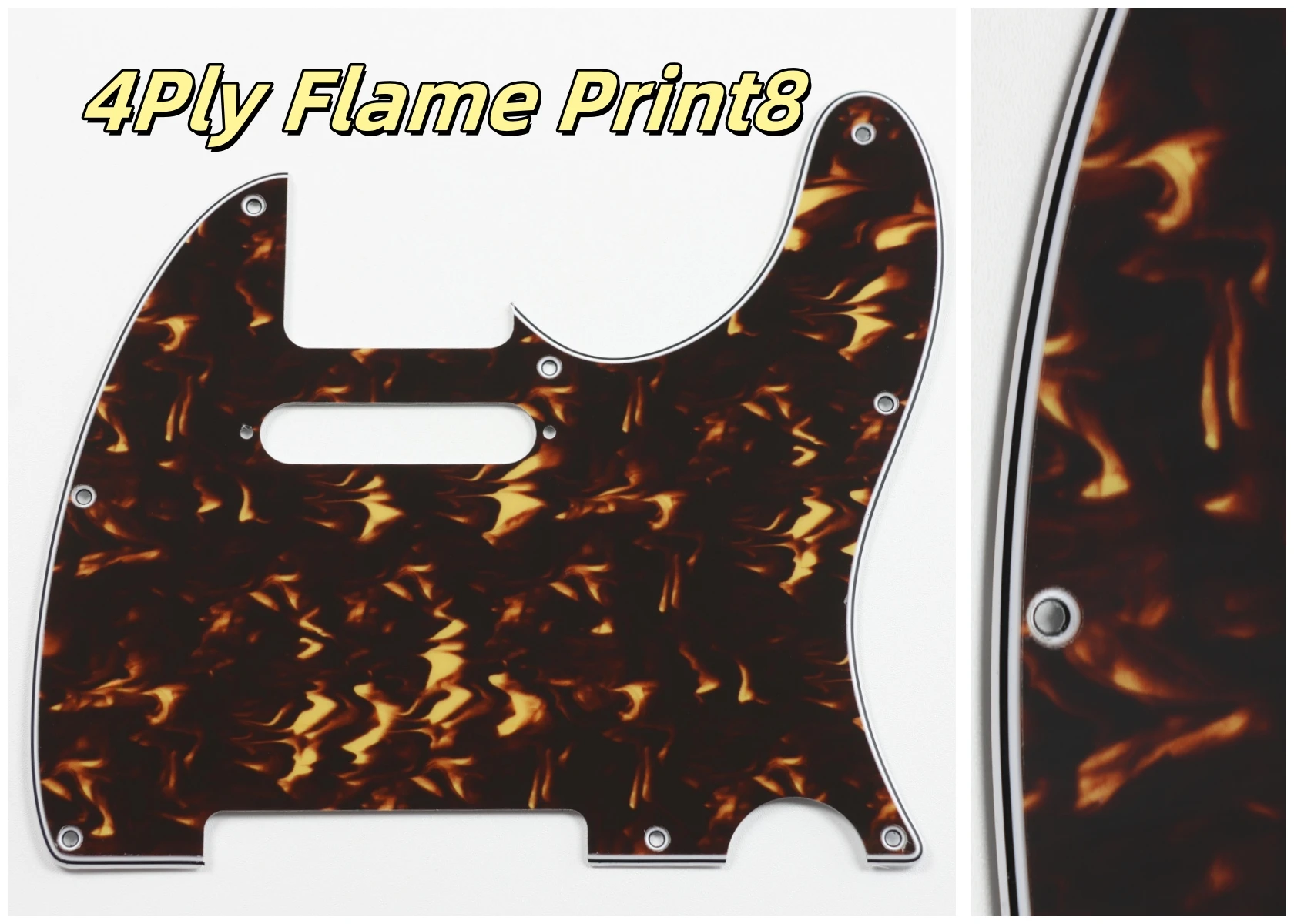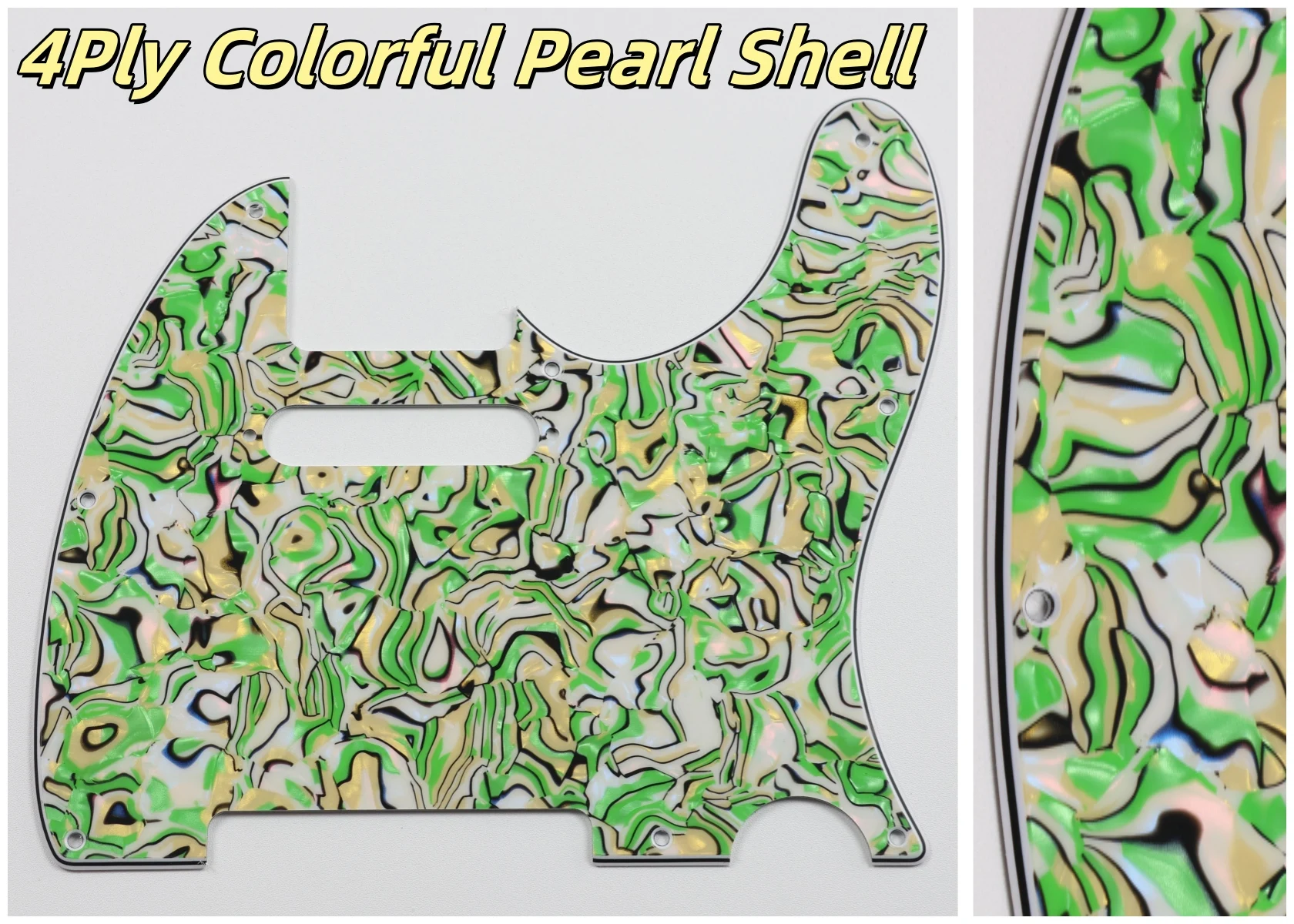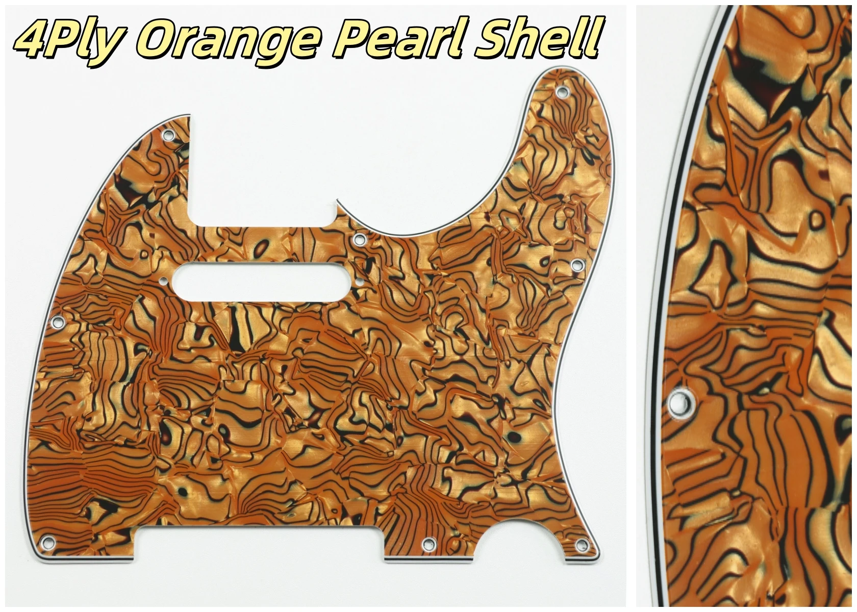 Made specifically for US Fender Tele guitars, this guitar pickguard collection showcases an impressive variety of colors and styles, including stunning options like Orange Pearl Shell, Brown Pearl Shell, and Blue Pearl Shell. Crafted from high-quality PVC and composite materials, each pickguard weighs 200g, ensuring durability and stability. The pickguards feature a smooth contoured edge with 8 pre-drilled screw holes for easy installation. Available in both 3Ply and 4Ply configurations, they display unique styles such as 4Ply Flame Print and Tortoise patterns. Additionally, a protective film provides anti-scratch durability to maintain their pristine appearance. Transform your guitar with this versatile and stylish selection.