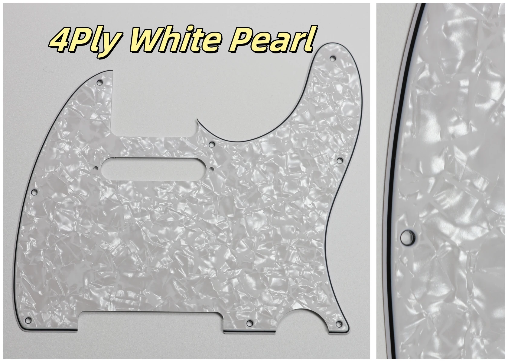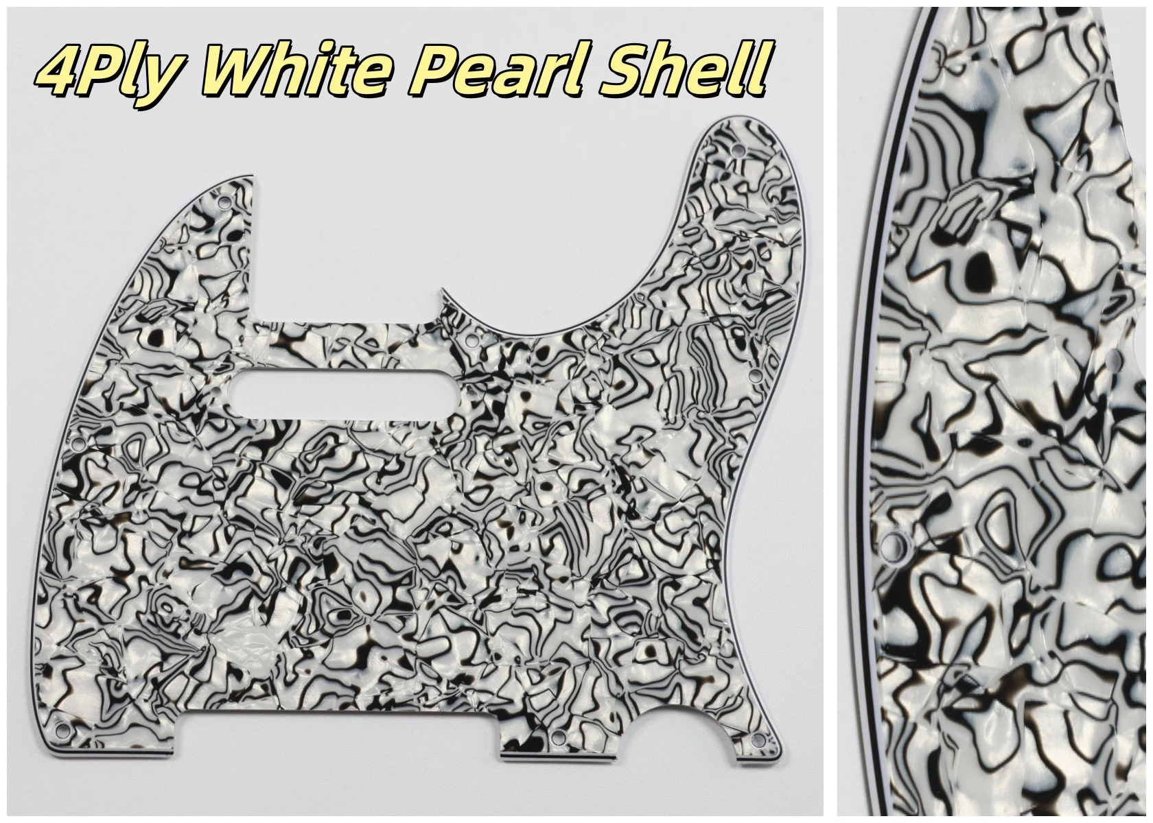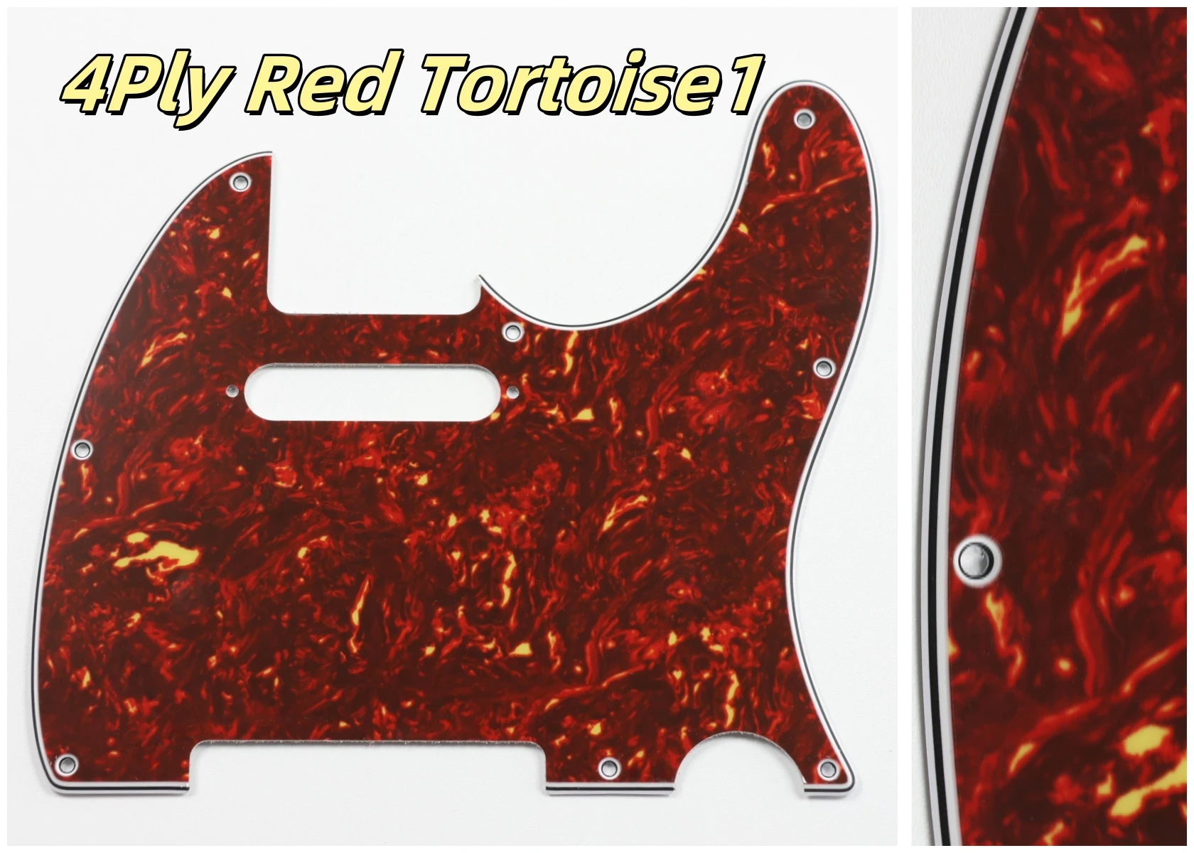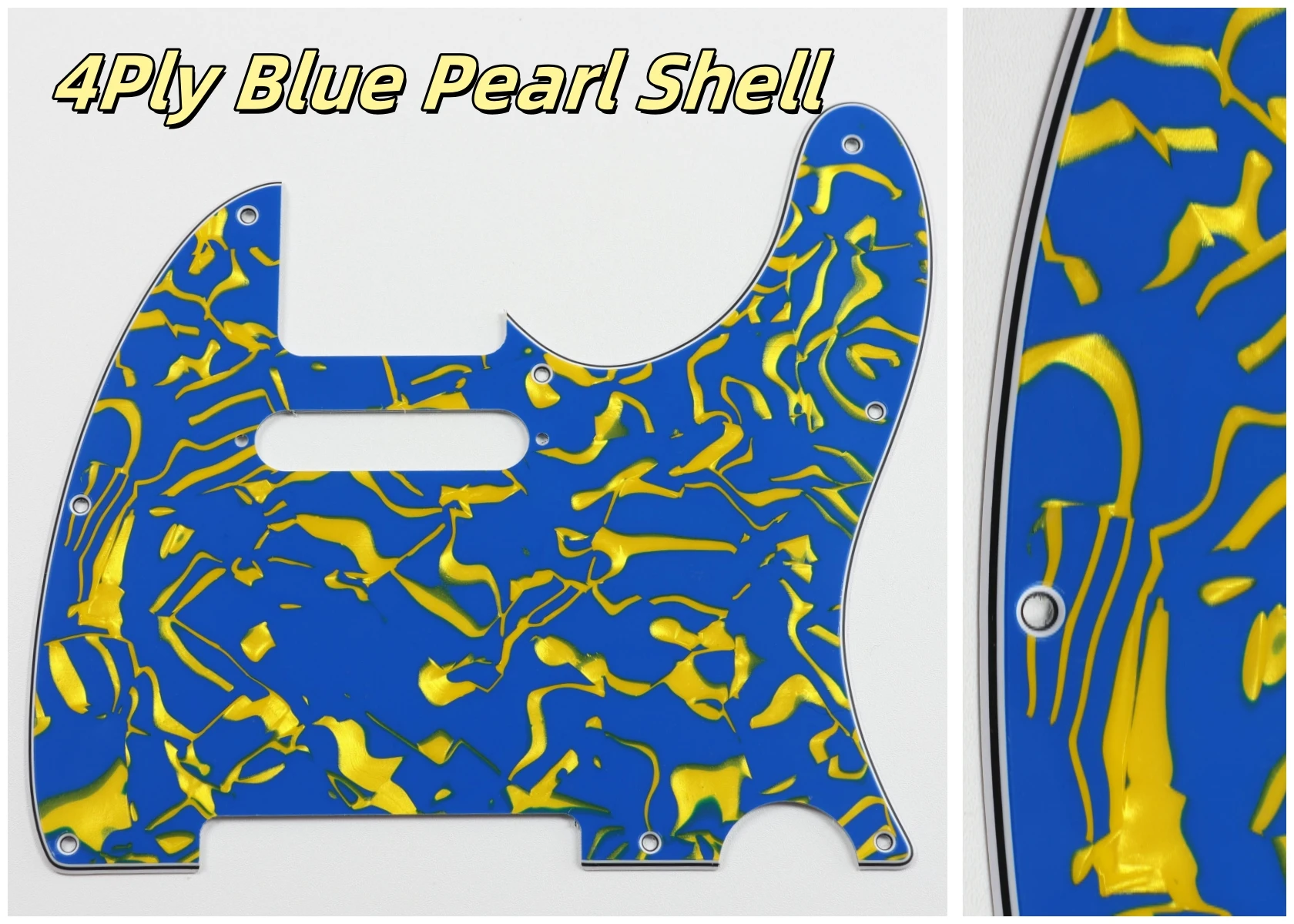 Made specifically for US Fender Tele guitars, this guitar pickguard collection showcases an impressive variety of colors and styles, including stunning options like Orange Pearl Shell, Brown Pearl Shell, and Blue Pearl Shell. Crafted from high-quality PVC and composite materials, each pickguard weighs 200g, ensuring durability and stability. The pickguards feature a smooth contoured edge with 8 pre-drilled screw holes for easy installation. Available in both 3Ply and 4Ply configurations, they display unique styles such as 4Ply Flame Print and Tortoise patterns. Additionally, a protective film provides anti-scratch durability to maintain their pristine appearance. Transform your guitar with this versatile and stylish selection.