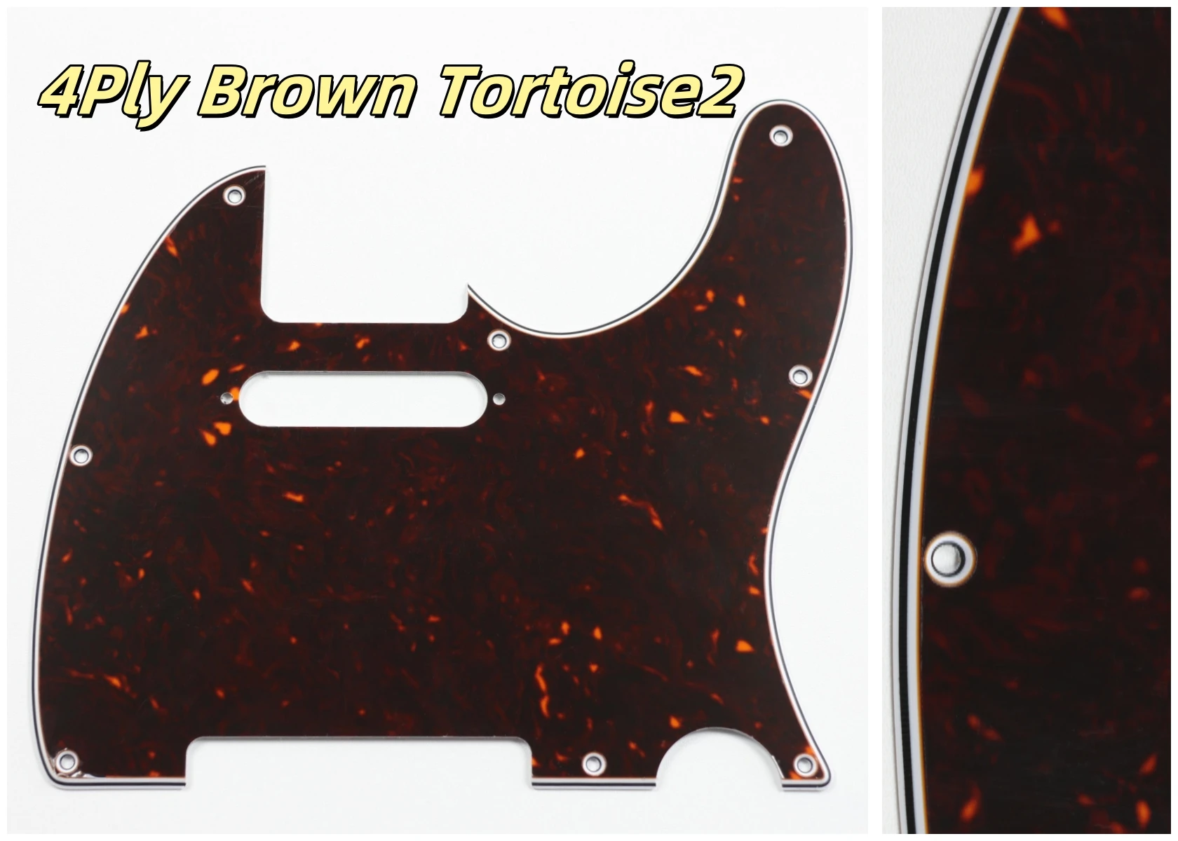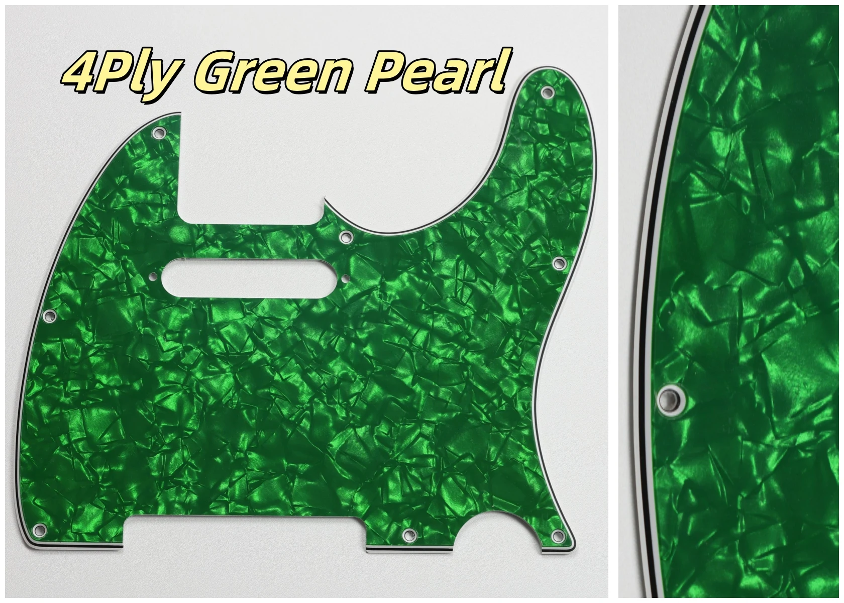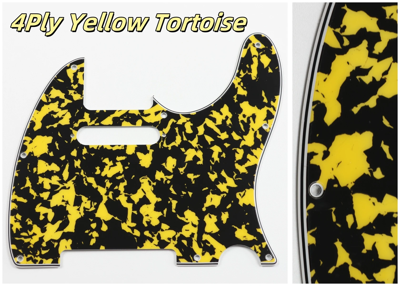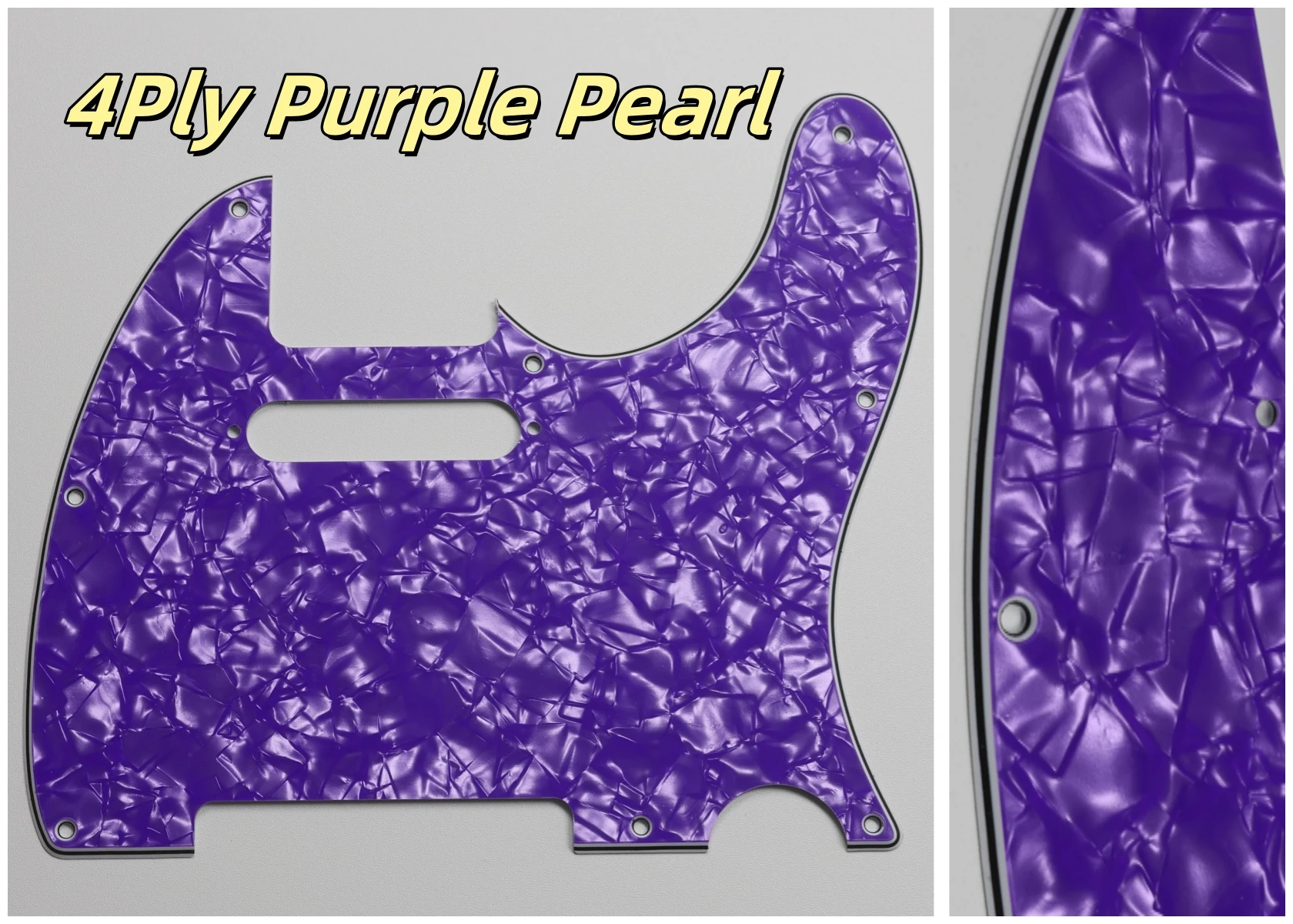 Made specifically for US Fender Tele guitars, this guitar pickguard collection showcases an impressive variety of colors and styles, including stunning options like Orange Pearl Shell, Brown Pearl Shell, and Blue Pearl Shell. Crafted from high-quality PVC and composite materials, each pickguard weighs 200g, ensuring durability and stability. The pickguards feature a smooth contoured edge with 8 pre-drilled screw holes for easy installation. Available in both 3Ply and 4Ply configurations, they display unique styles such as 4Ply Flame Print and Tortoise patterns. Additionally, a protective film provides anti-scratch durability to maintain their pristine appearance. Transform your guitar with this versatile and stylish selection.