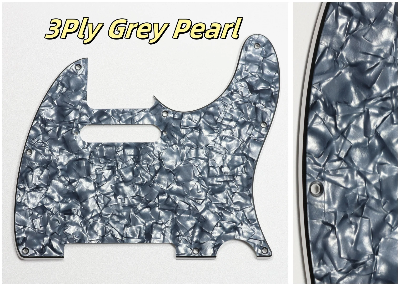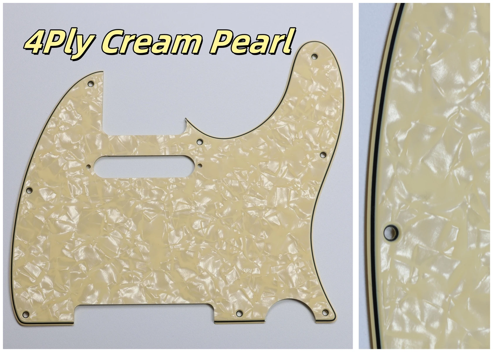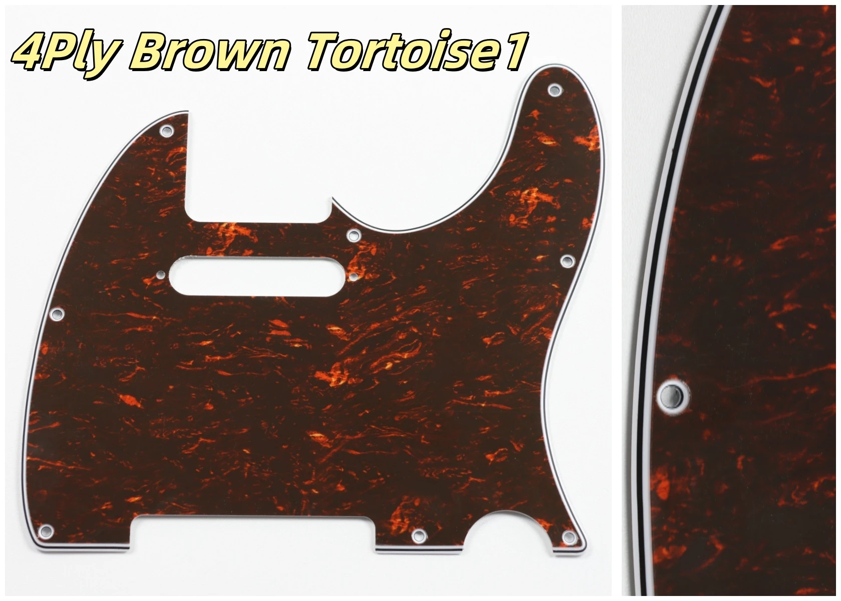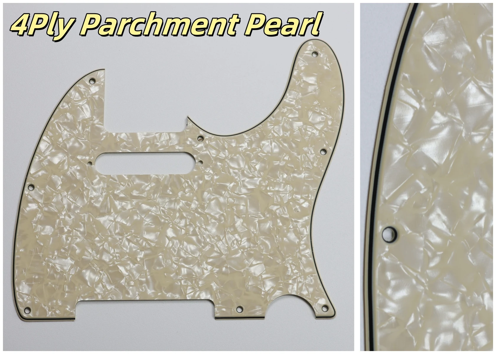 Made specifically for US Fender Tele guitars, this guitar pickguard collection showcases an impressive variety of colors and styles, including stunning options like Orange Pearl Shell, Brown Pearl Shell, and Blue Pearl Shell. Crafted from high-quality PVC and composite materials, each pickguard weighs 200g, ensuring durability and stability. The pickguards feature a smooth contoured edge with 8 pre-drilled screw holes for easy installation. Available in both 3Ply and 4Ply configurations, they display unique styles such as 4Ply Flame Print and Tortoise patterns. Additionally, a protective film provides anti-scratch durability to maintain their pristine appearance. Transform your guitar with this versatile and stylish selection.