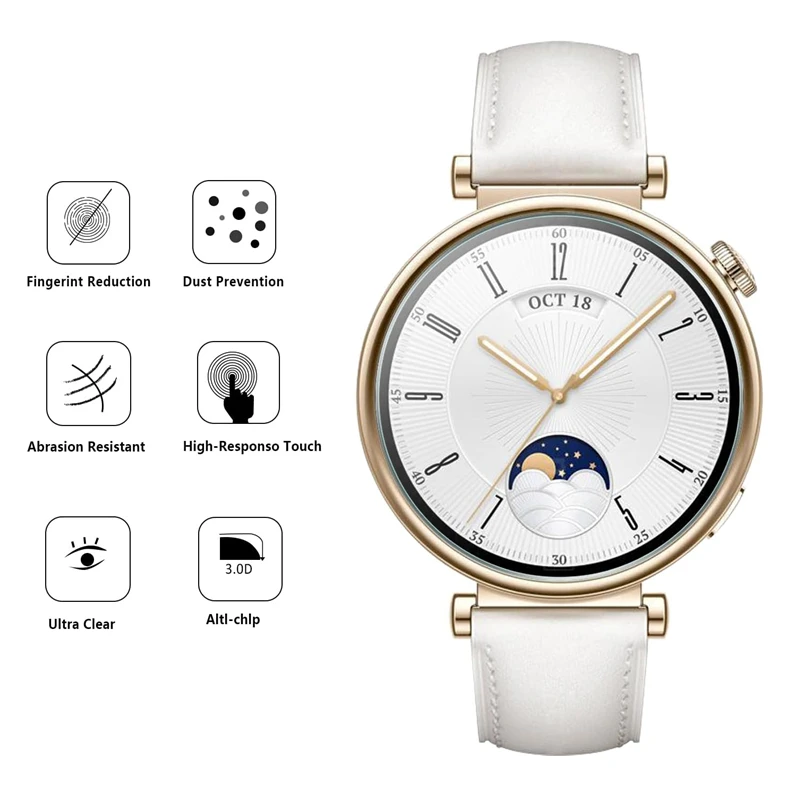 - Technical specifications: compatible with Huawei Watch GT5 and GT 5 Pro, available in 41mm, 42mm, and 46mm dial diameters, constructed from durable tempered glass with precise cutouts for the crown and sensors.