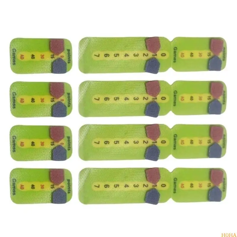 - Bright green rectangular stickers display clear black numerals from 0 to 7, enabling accurate scoring during tennis matches and training sessions in any environment.