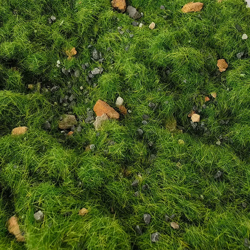 - Realistic Appearance: This ground grass mimics natural landscapes with a vibrant wild green base, enhanced by small brown and stone particles.