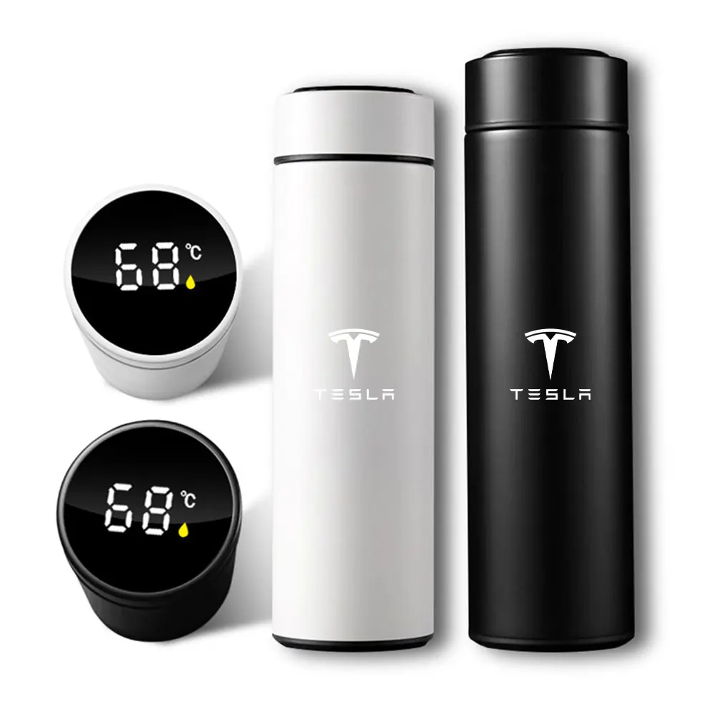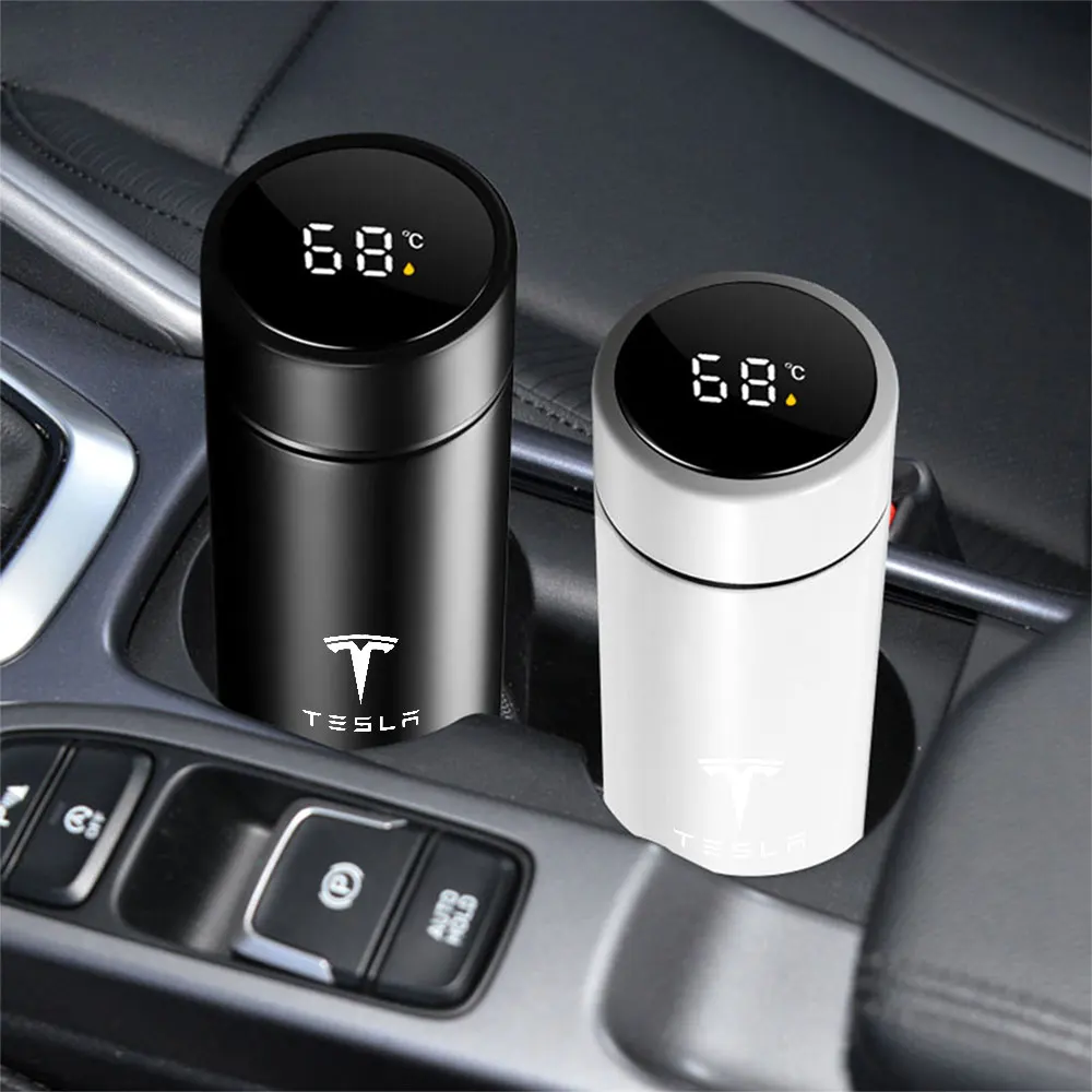 Experience the perfect blend of style and functionality with this 500ml stainless steel travel mug, designed specifically for Tesla owners and automotive enthusiasts. Crafted from high-quality 304 stainless steel, it features a double-layer vacuum design that keeps beverages hot or cold for up to 12 hours. The matte black or matte white finish offers a sleek, modern look that complements any vehicle interior. The mug is equipped with an HD LCD touch screen that displays real-time water temperature, allowing you to enjoy your coffee, juice, or any drink at the ideal temperature anytime. Its BPA-free, eco-friendly construction ensures safety, durability, and easy cleaning. A versatile accessory that transforms your driving experience with convenience and style.