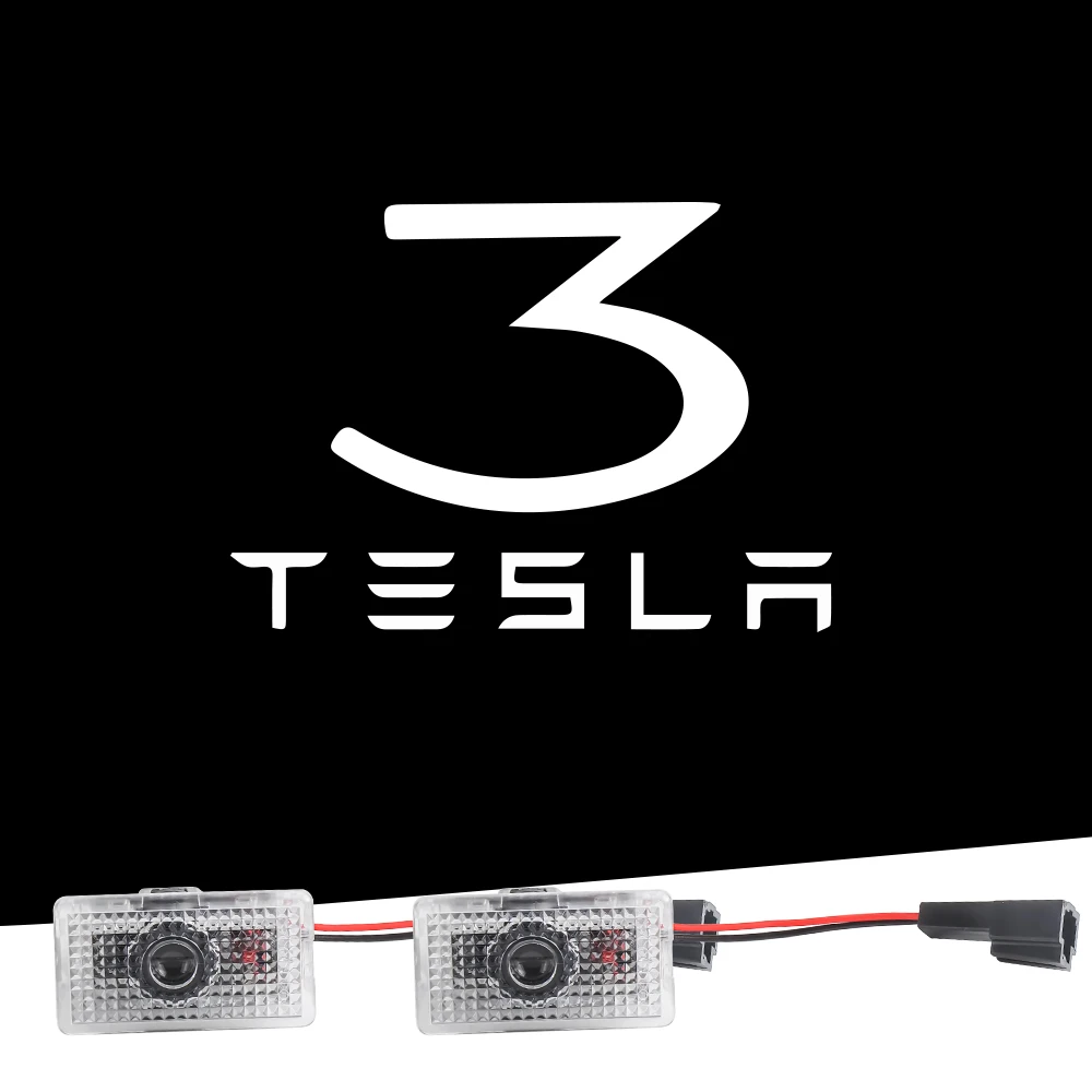 - Projects four customizable logos—”T,” “S,” “X,” and “3”—each with the “Tesla” branding, illuminated in bright, white light for high visibility and style.