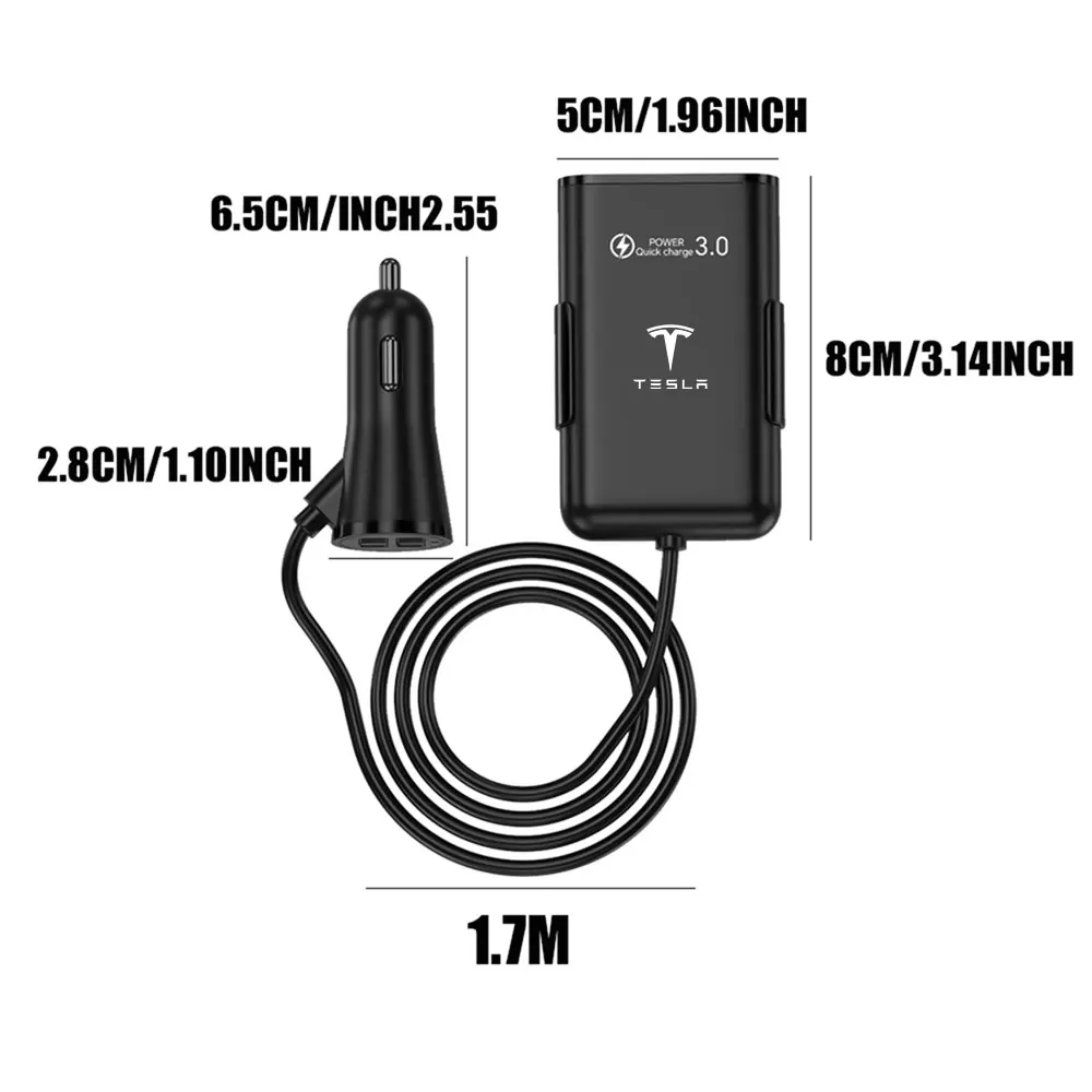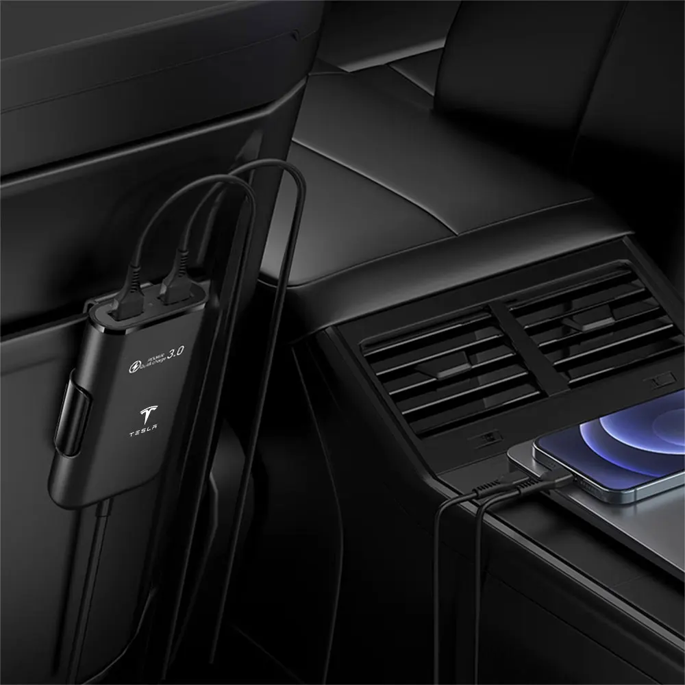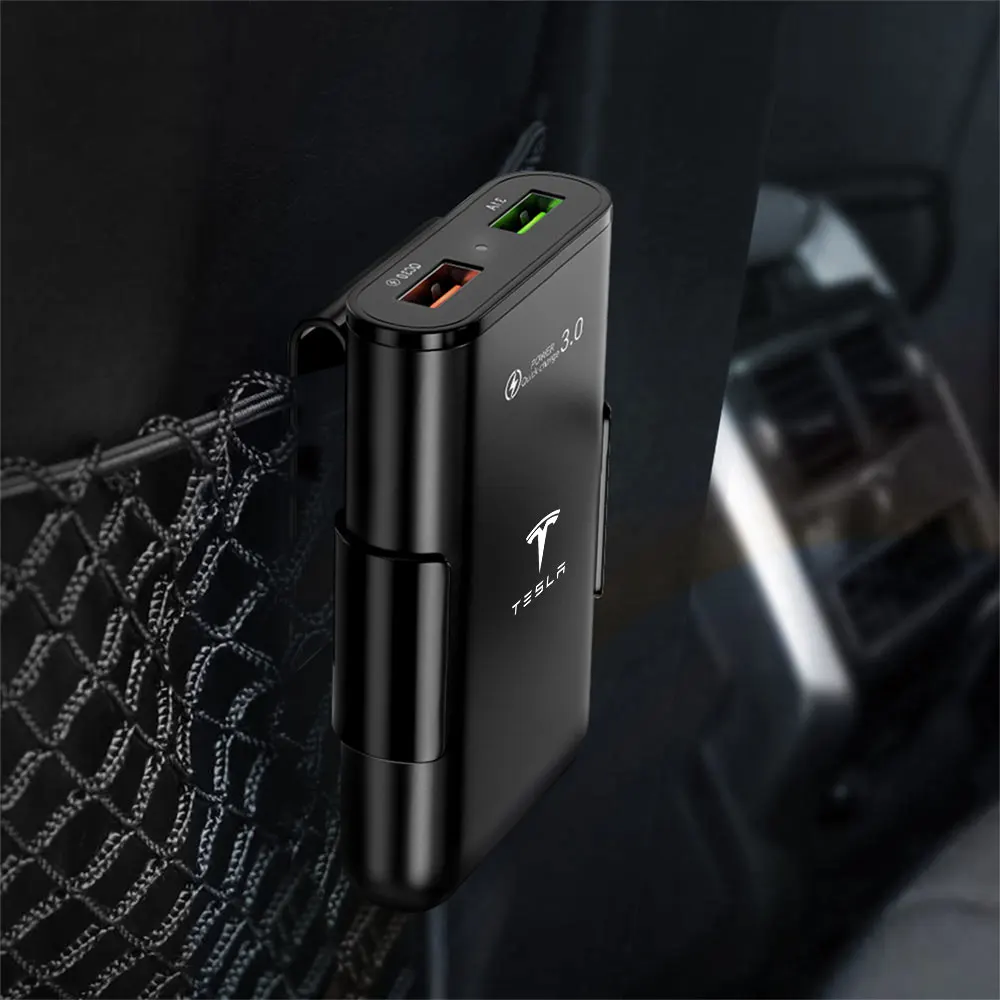 Experience effortless charging with this sophisticated black Tesla car charger adapter, expertly designed to fit models 3, S, X, Y from 2020 to 2022, as well as Roadster and Invader variants. Its modern rectangular shape with rounded edges and matte black finish seamlessly blends into your vehicle’s interior, providing a minimalist and tech-focused look. The dual USB ports and Type-C output support fast charging up to 25W, ensuring your devices are powered quickly and safely during every drive. Made from durable aluminum alloy and ABS, it offers premium quality and longevity. A perfect upgrade for your vehicle, combining style and functionality while giving you peace of mind with smart, efficient charging.