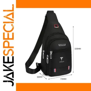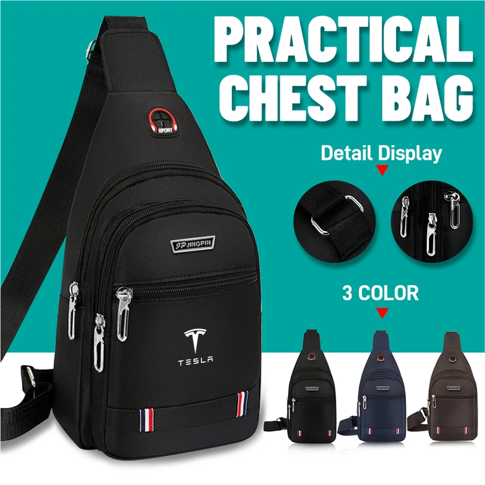 Experience practical style with this sleek, one-shoulder car bag available in black, blue, and brown, designed with multiple pockets for daily essentials. Measuring approximately 320mm in height, 170mm in width, and 50mm in depth, it offers ample storage space for your Tesla Model 3, Model S, Model X, Model Y, Roadster, Invader Coil, Mod WYE, K80, and SpaceX models. Crafted from durable, textured materials, its minimalist aesthetic features a horizontal front zipper pocket and a stylish red-outlined circular patch, blending functionality with modern design. Adjustable straps ensure a comfortable fit, making it an ideal accessory for active, on-the-go lifestyles.