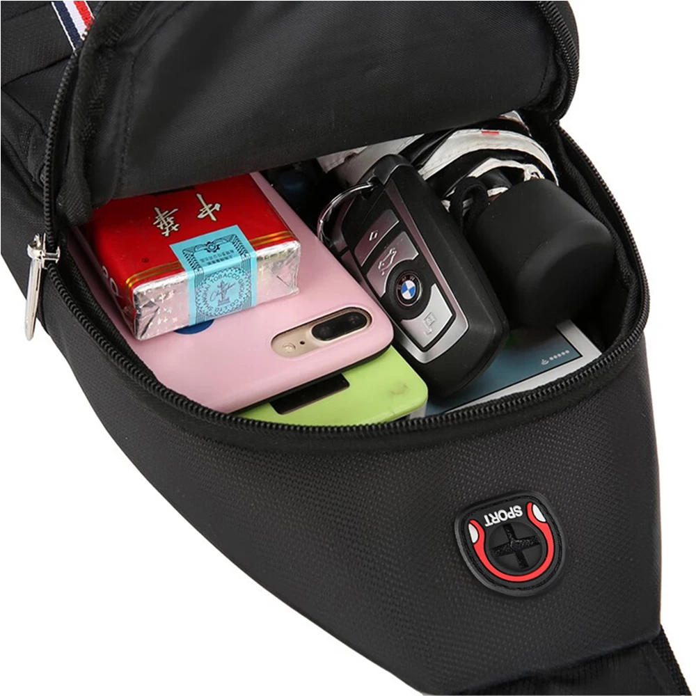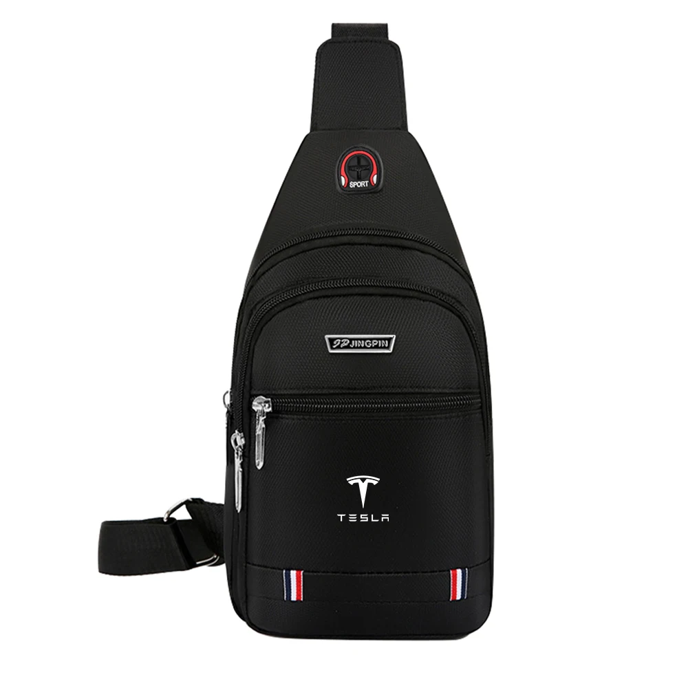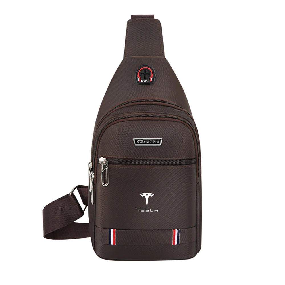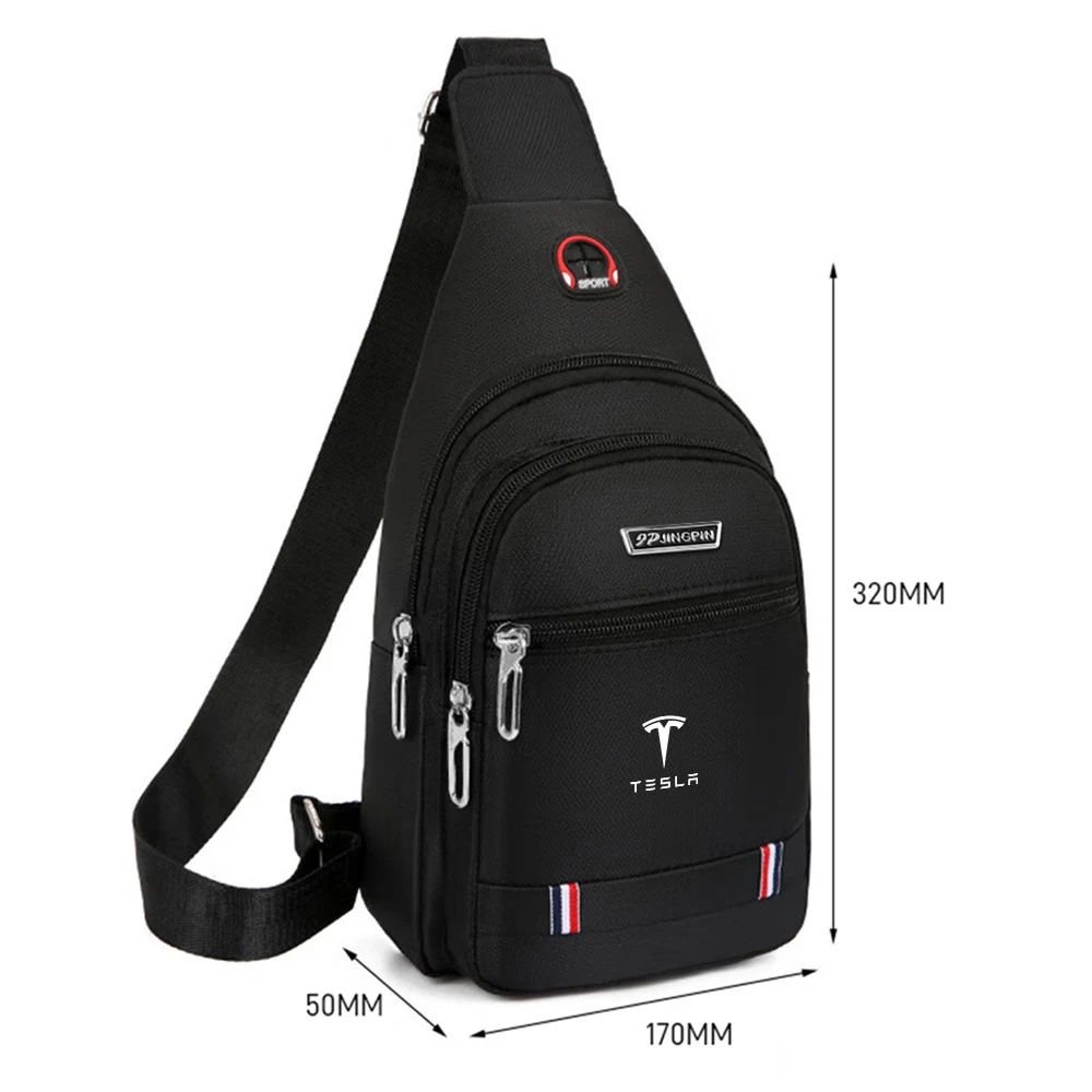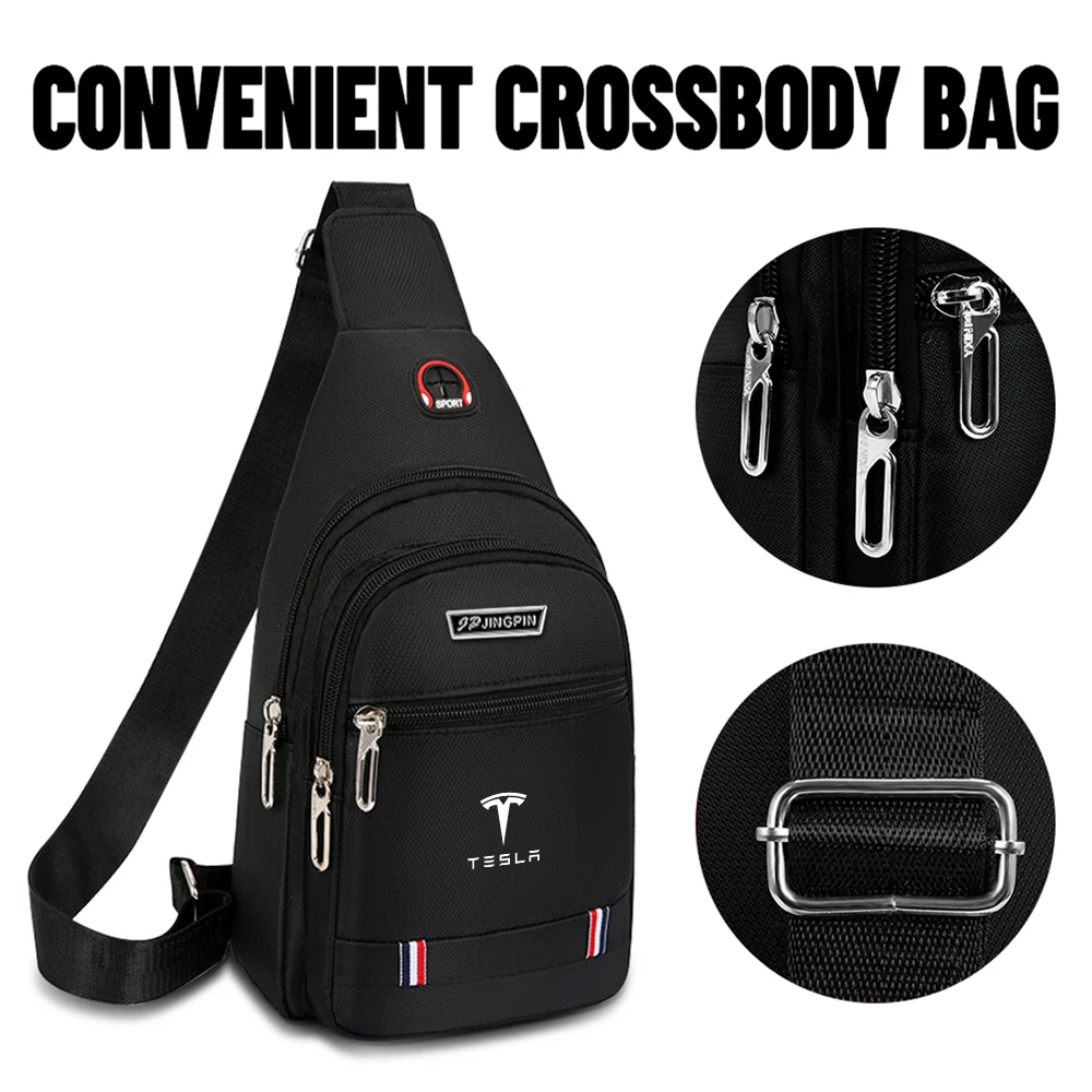 Elevate your casual style with this versatile one-shoulder sling bag, perfect for everyday use and compatible with Tesla Model 3, Model S, Model X, Model Y, Roadster, and SpaceX-related items. Crafted from durable, chemical-free synthetic material, it features multiple zippered pockets—including a large main compartment and smaller front pocket—enhancing organization and accessibility. The sleek design is available in black, blue, and brown, with metallic silver zippers and decorative stripes of red, white, and blue at the bottom, adding sporty flair. The adjustable shoulder strap ensures a comfortable fit, making this bag an ideal accessory for those who value functionality and style.