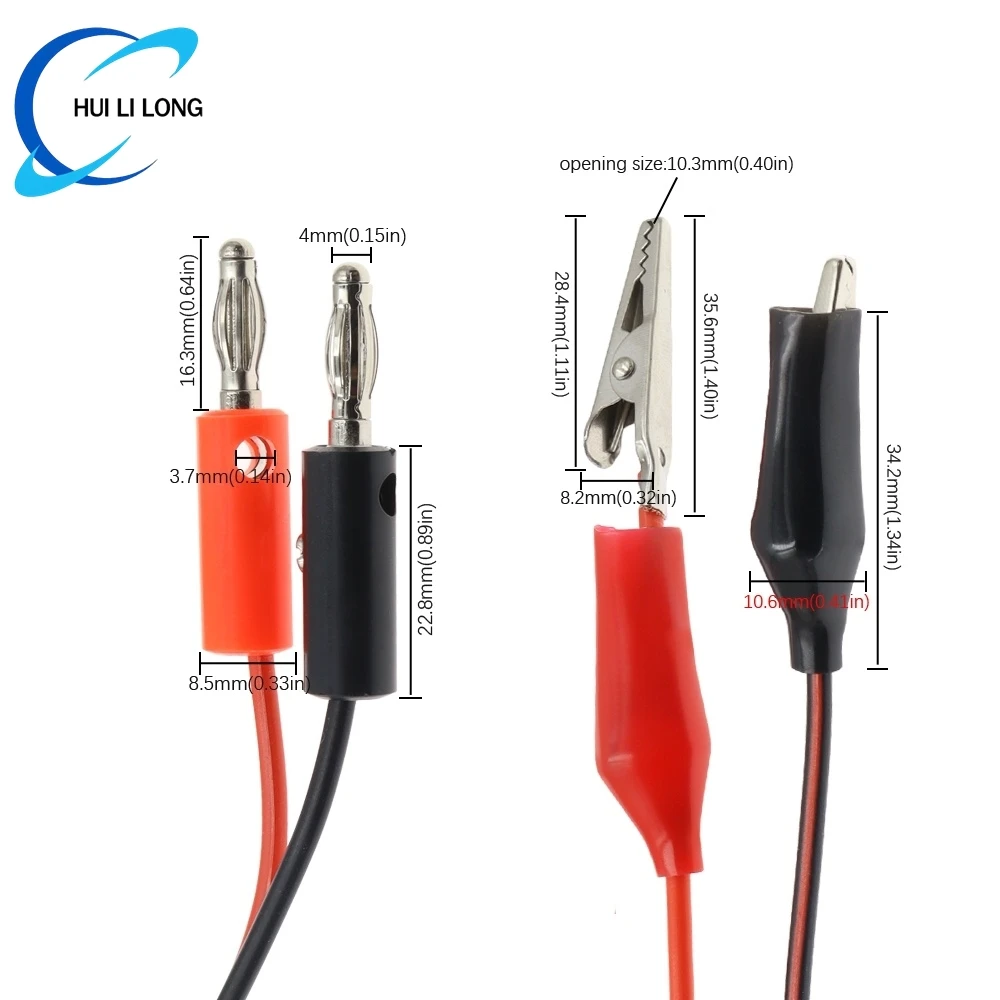 Experience reliable electrical testing with a 1-meter test cable featuring a 4mm injection banana plug connected to shrouded copper clamps with alligator clips. The copper components ensure excellent conductivity, while the insulated design guarantees safety during use. The cable’s flexible construction and 39mm long clamps provide easy handling and secure connections to testing probes and electrical components. Suitable for various testing applications, this customizable cable combines durability with precision, making it an essential tool for electrical technicians and enthusiasts seeking efficient, safe, and high-quality testing solutions.