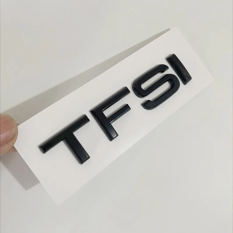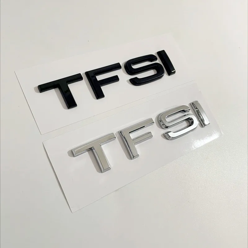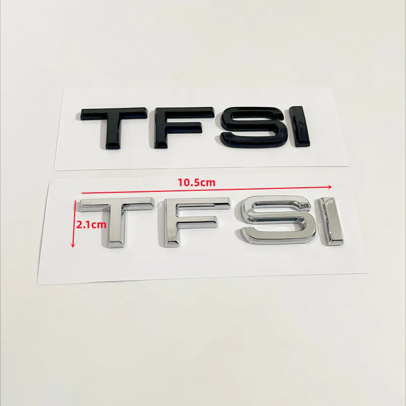 Picture completing your vehicle’s style with this sophisticated TFSI logo emblem. Crafted from durable ABS plastic, it offers weather resistance and withstands minor impacts, making it perfect for exterior use. Each emblem measures approximately 10.5 cm long by 2.1 cm wide, fitting seamlessly onto your car’s trunk. The three-dimensional design features smooth, rounded “TFSI” lettering, evenly spaced for an ultra-modern aesthetic. Available in two striking finishes—glossy black for a sleek, contemporary look or chrome silver for a shiny, metallic appeal—these badges elevate your vehicle’s appearance. Whether you're replacing an old badge or customizing your ride, this emblem adds a refined, stylish touch to any compatible model.