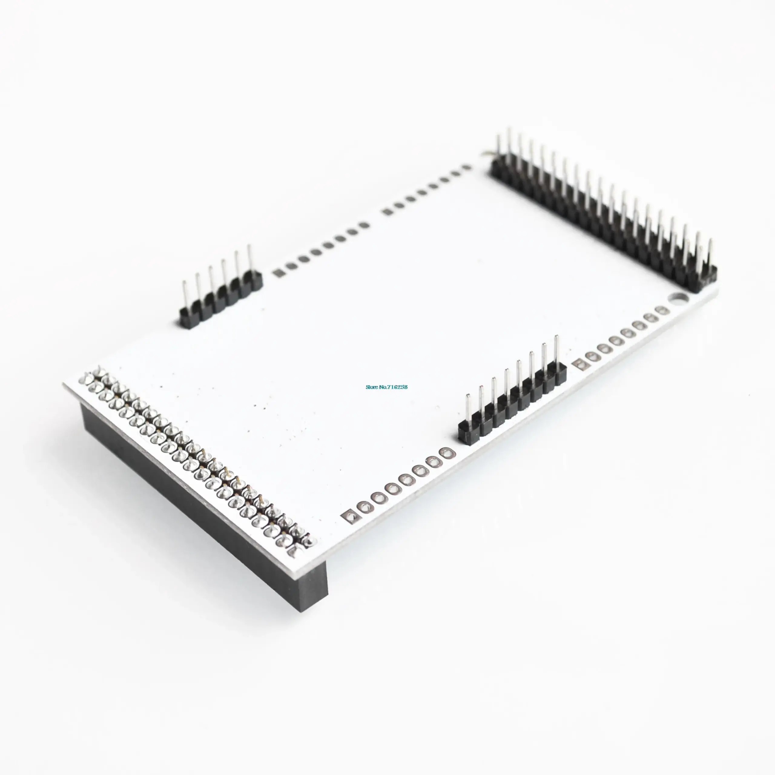 Enhance your microcontroller projects with this versatile TFT LCD Shield Expansion Board, supporting various display sizes from 3.2” to 7.0”. Designed for compatibility with TFT01 LCD modules operating at 3.3V, it features a sleek white circuit board with organized component placement, black integrated circuits, a large rectangular connector port, and evenly spaced metal pins for seamless connections. Ideal for use with Mega2560 and other microcontrollers, it provides ample IO support for touchscreen and SD card interfaces without additional modules. This new, customized shield ensures efficient voltage regulation with a 1V supply voltage and 1W dissipation power, making it a reliable choice for advanced display projects.