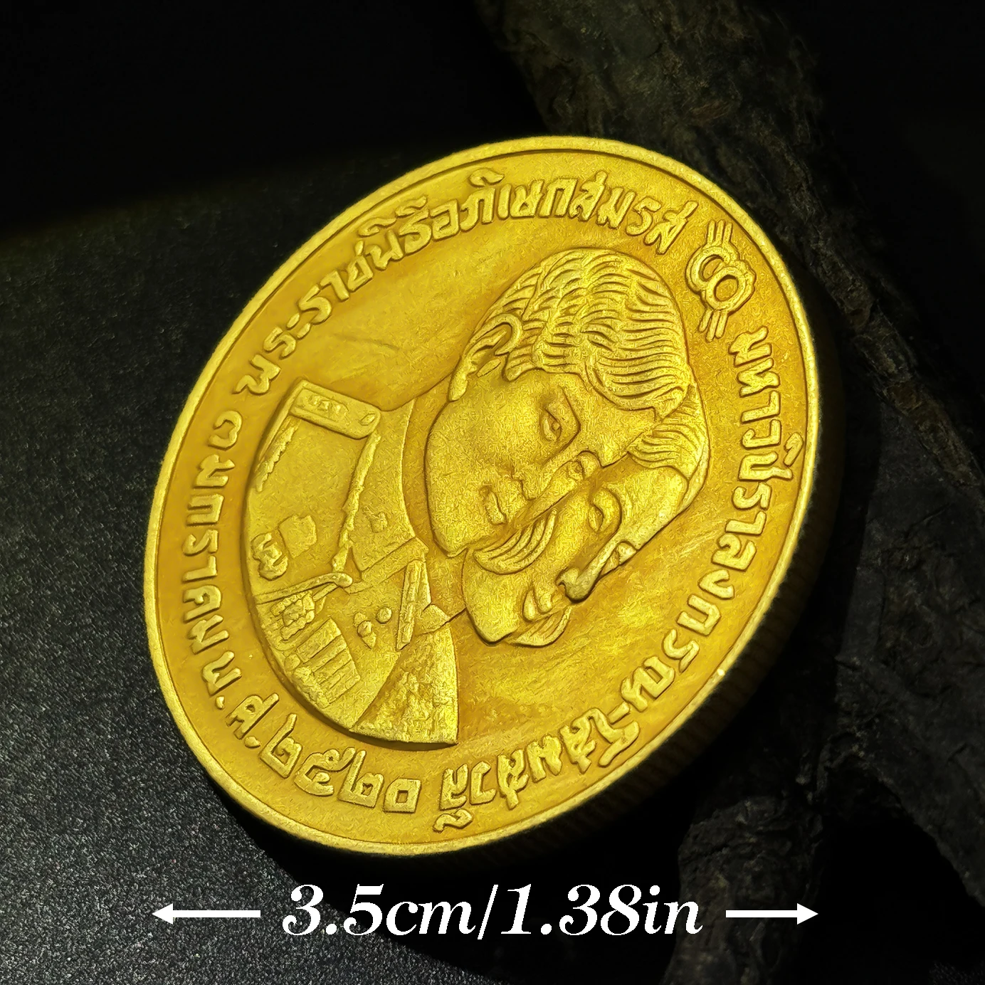 Imagine owning this beautifully crafted Thai commemorative coin, measuring approximately 35mm in diameter. Made from durable copper with a shiny, golden-yellow hue, it exudes a vintage and aged appeal that enhances its collectible value. The intricate carved relief showcases two prominent figures in military attire, with their facial features and flowing hair rendered with impressive detail. Encircling the portraits, embossed Thai script adds authenticity and cultural richness, while decorative symbols like gears or caduceus emphasize Thailand’s patriotic heritage. The textured surface, created through expert carving techniques, offers a tactile, antique feel that makes this coin a standout piece for collectors or as a meaningful gift. Its craftsmanship embodies history, tradition, and artistic finesse.