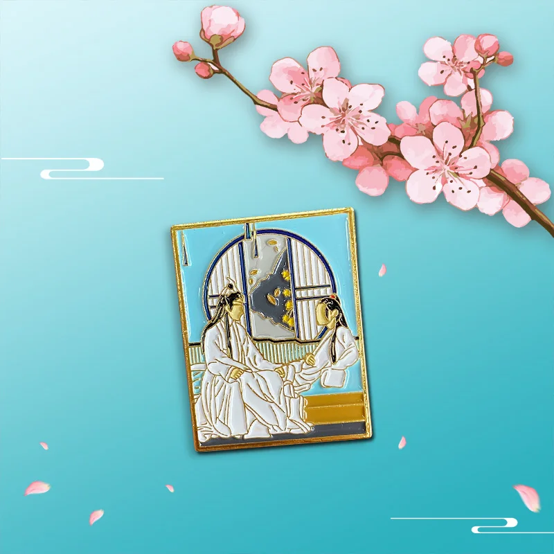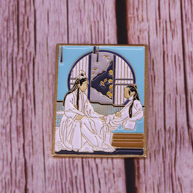 Experience the elegance of this unisex figure-shaped copper brooch, measuring approximately 30 mm, from the soulmate series inspired by popular Chinese dramas. Featuring a classic design, it highlights a detailed, colorful representation of characters from “The Untamed,” with vivid enamel fills in pastel blues, purples, and whites, accented by darker outlines and gold-tone details. Crafted from durable copper and secured with a metal butterfly clasp, this pin is perfect for adding a meaningful touch to your attire. Its versatile style makes it suitable for any gender, allowing you to showcase your passion for the series with this finely crafted accessory.