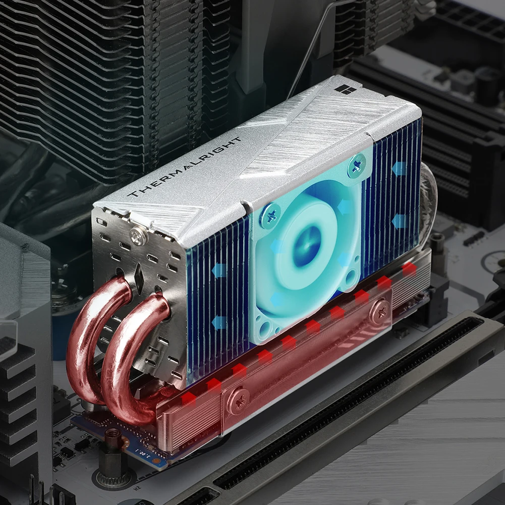 - Includes a thermal pad to improve heat transfer from the SSD to the heatsink, enhancing overall cooling performance.