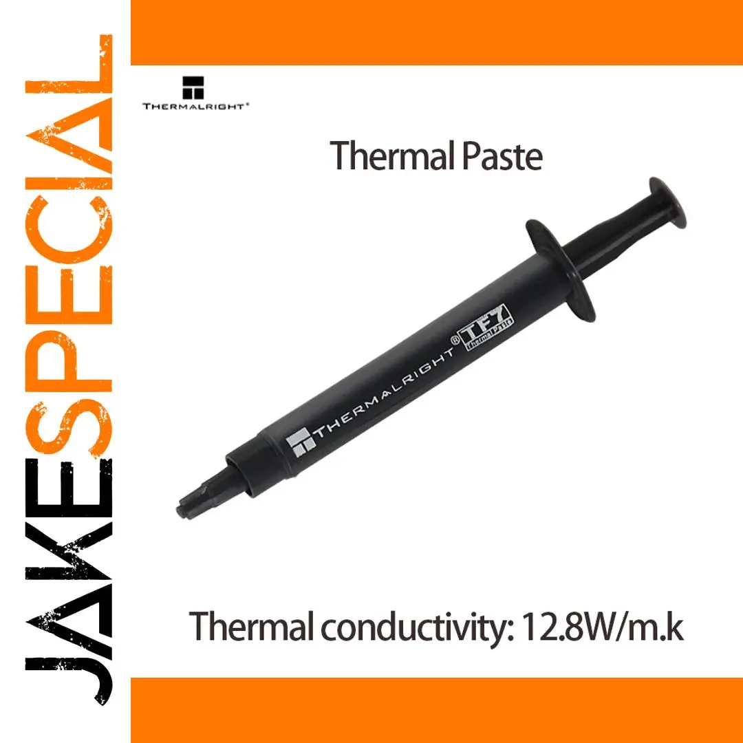 Experience optimal CPU cooling with this high-performance thermal paste from Thermalright. Designed with precision for effortless application, the TF7 guarantees superior heat transfer thanks to its carbon-based formula, with a thermal conductivity of 12.8W/m·K. Its non-metallic, non-electrically conductive composition ensures safety and eliminates short circuit risks. The durable formulation lasts for over 8 years without reapplication, providing long-term protection and efficiency. The viscosity offers a smooth, semi-solid consistency, making it ideal even for beginners. Whether you're customizing a gaming rig or improving a workstation, this thermal grease ensures your system's stability and reliable heat dissipation, helping you push your hardware to its maximum potential. The TF7's minimalist design emphasizes quality and performance.