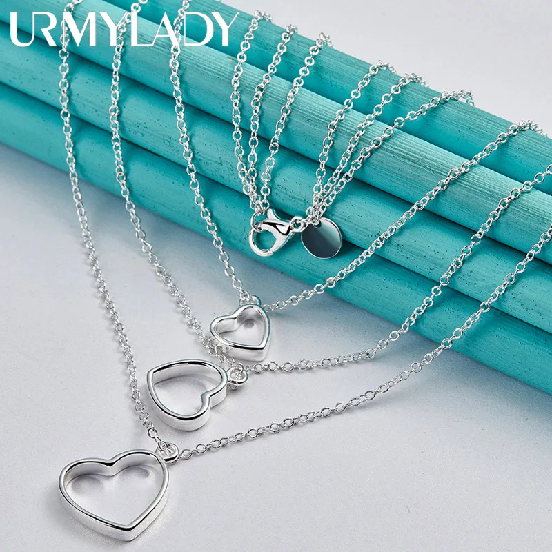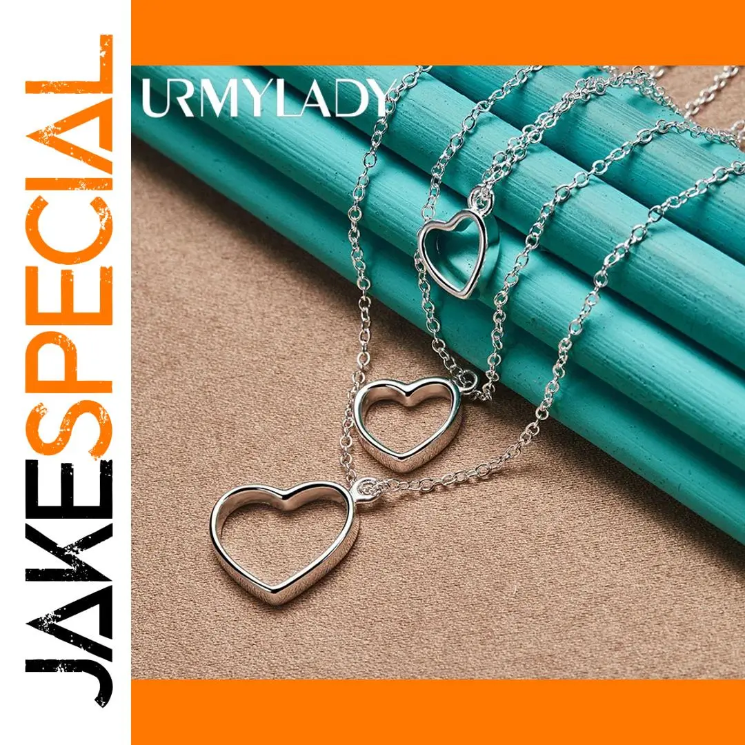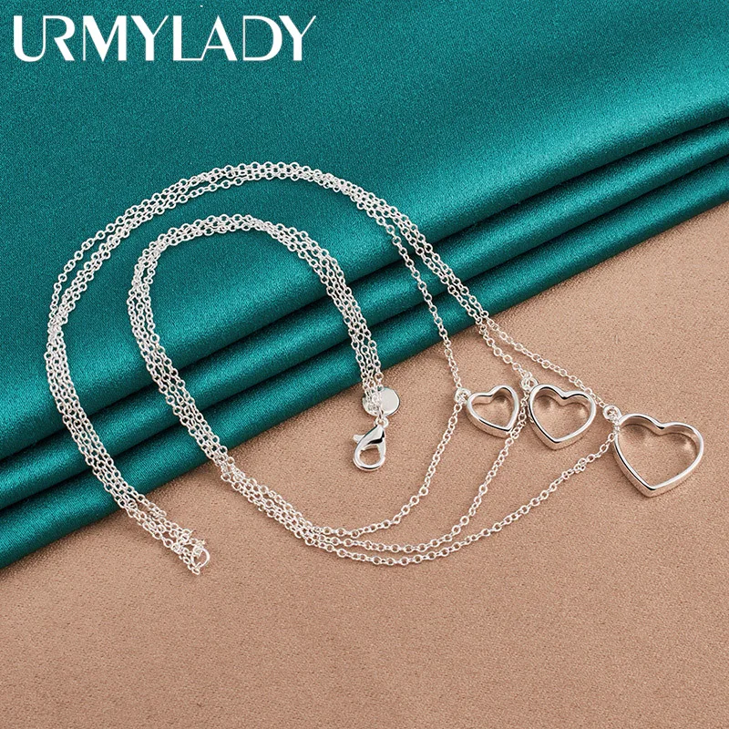 Elevate your style with this elegant URMYLADY 925 sterling silver necklace, featuring a layered trio of open heart-shaped pendants with smooth, rounded edges. Each pendant varies in size, creating a graceful cascading effect, anchored by a delicate 45 cm O-chain that comfortably rests at mid-neck. Crafted from polished sterling silver with a sleek surface finish, this fine jewelry piece weighs approximately 10.70 grams and is perfect for special occasions like parties or everyday wear. Certified under REACH standards, it reflects timeless sophistication and minimalist elegance—an exquisite gift or personal treasure that enhances your look effortlessly.