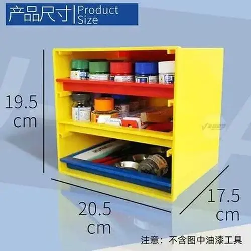 Imagine organizing your paints and tools with ease using this multifunctional, three-layer pull-out storage box. Its spacious design, measuring 20.5cm in length, 17.5cm in width, and 19.5cm in height, offers ample space for all your hobby essentials. The top two layers feature a calming blue color, with compartments neatly filled with small, white cylindrical containers with white lids, perfect for model paints or similar small items. The bottom layer, highlighted in bold red, contains elongated brushes and tools, arranged for quick access. Its playful aesthetic naturally fits any workspace, bringing order and clarity to your creative process. Whether you're a hobbyist or a dedicated model builder, this storage solution simplifies your setup and sparks inspiration.