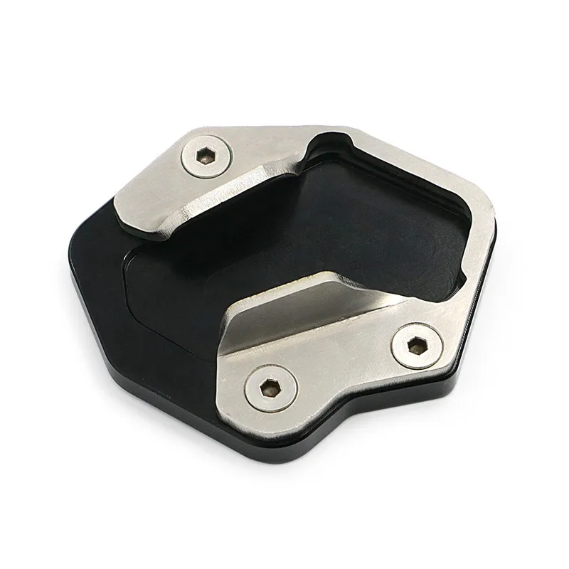 Enhance your motorcycle’s stability with this premium support plate designed specifically for the Tiger 800 series. Crafted from CNC-machined aluminum and stainless steel, this extension pad offers a sleek, modern look while adding durability and strength. Its anodized finish ensures resistance to corrosion and fading, maintaining its aesthetic appeal over time. The innovative geometric design combines matte black rubber inserts with polished aluminum framing, creating a sophisticated contrast. Easy to install without modifications, it securely attaches to your existing support points, providing a wider contact area that significantly improves ground stability. Whether you’re parking on uneven surfaces or seeking extra support during rides, this support plate makes a practical upgrade that blends style and function seamlessly.